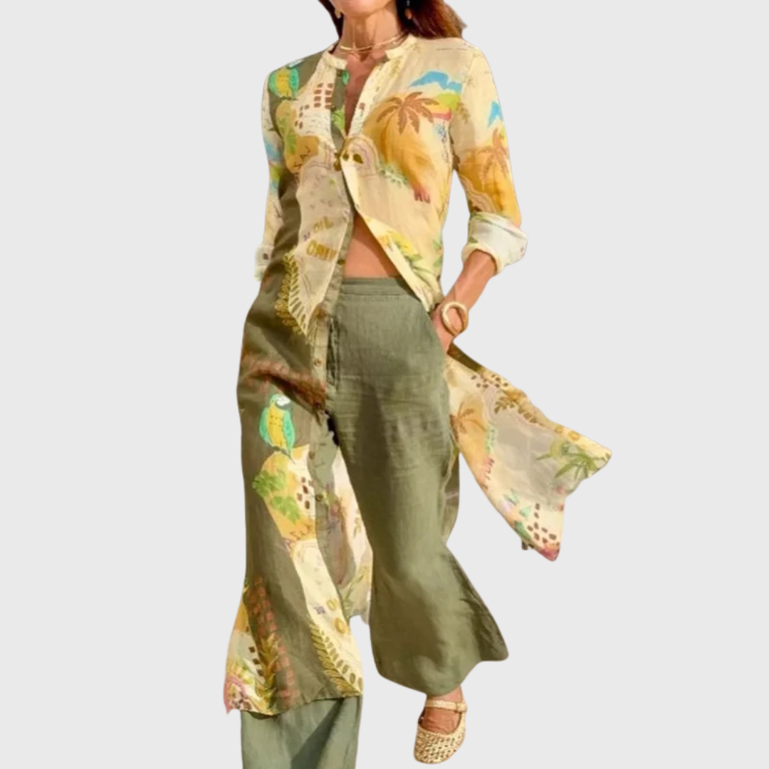 Unser beliebtes Sommer-Set bringt die perfekte Mischung aus Eleganz, Komfort und Leichtigkeit. Mit seinem modernen Schnitt und den raffinierten Details ist es wie gemacht für entspannte Tage, Spaziergänge in der Sonne oder ein schickes Café-Date. Ein echtes Must-have für alle, die stilvoll durch den Alltag gehen möchten.