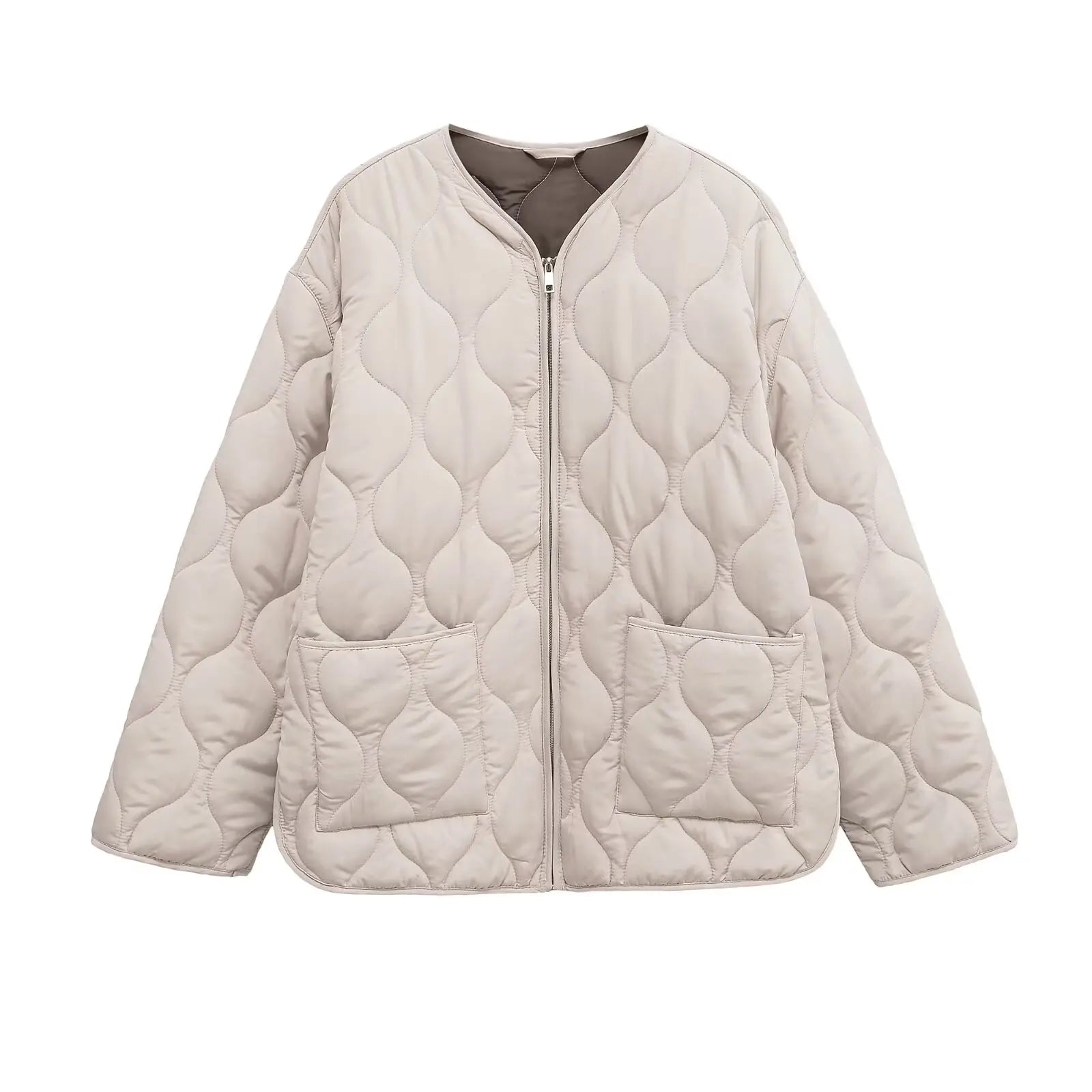 Bewältige kalte Tage mit Leichtigkeit in diesem leichten gepolsterten Layer, der alltägliche Funktionalität mit einem unverwechselbaren Stil kombiniert. Die oversized Silhouette bietet eine entspannte Eleganz, während die großen Taschen praktische Nützlichkeit mit modernem Charme vereinen. Hergestellt aus einem weichen und gemütlichen Stoff, hält sie dich warm, ohne zusätzliches Volumen hinzuzufügen. Ob du zu einem Brunch gehst oder shoppen gehst, diese Jacke vervollständigt deinen Look mit einem Hauch von natürlicher Eleganz.