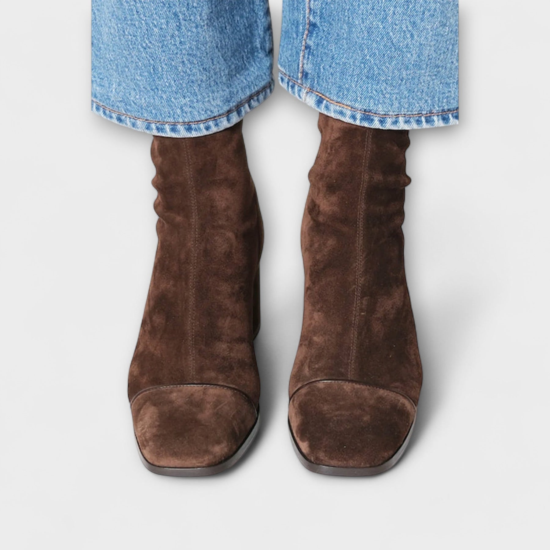 Wir präsentieren unsere eleganten Faux-Suede-Stiefel, die für den täglichen Gebrauch und legere Ausflüge entworfen wurden. Mit einer schicken quadratischen Zehenform und einem bequemen mittleren Absatz sind diese Stiefel perfekt für jeden Anlass.