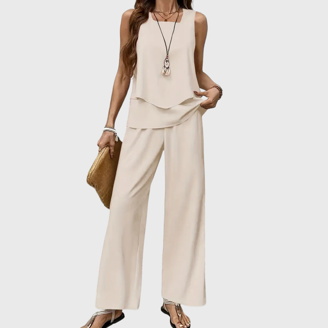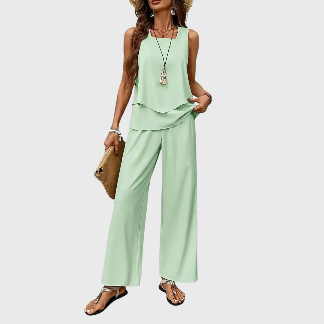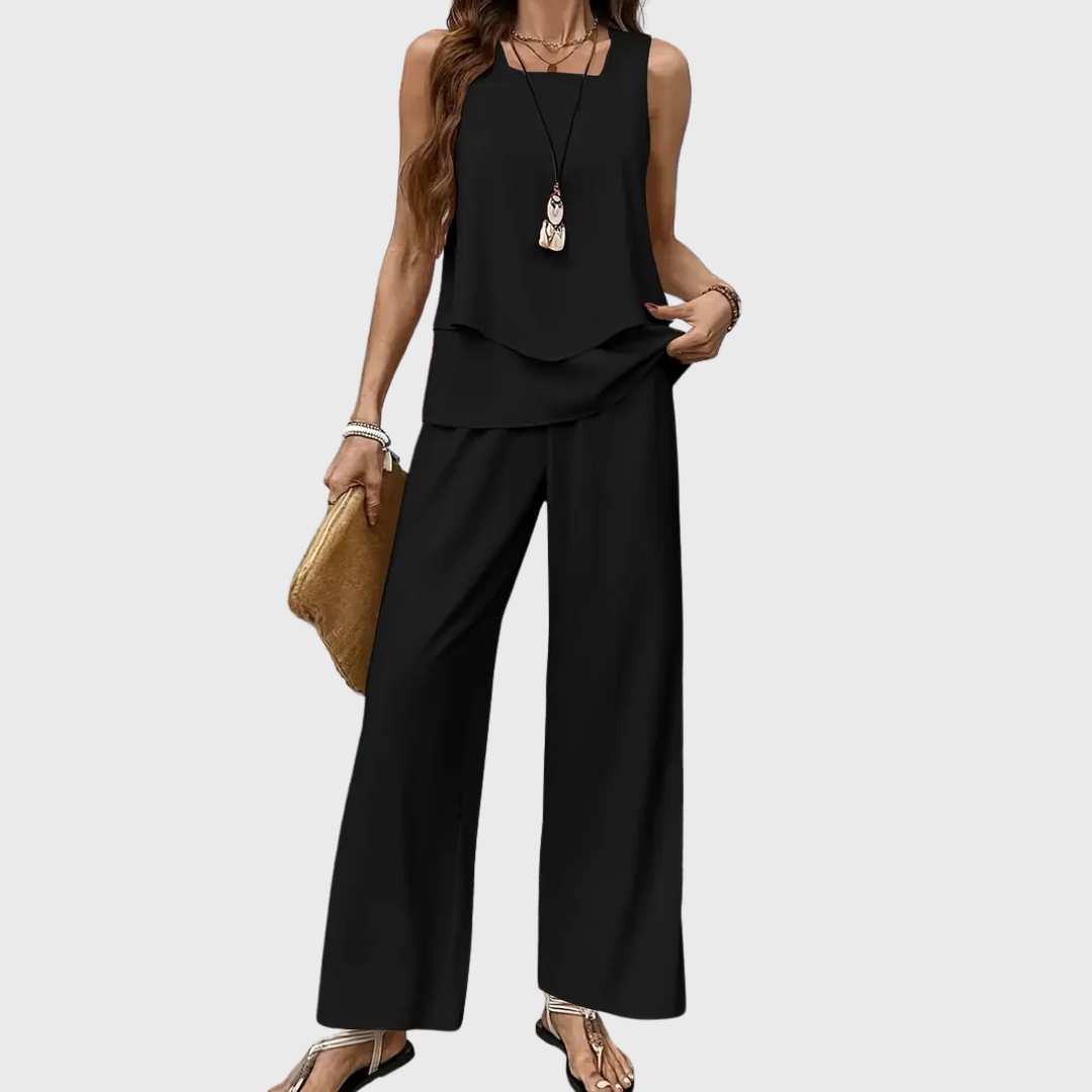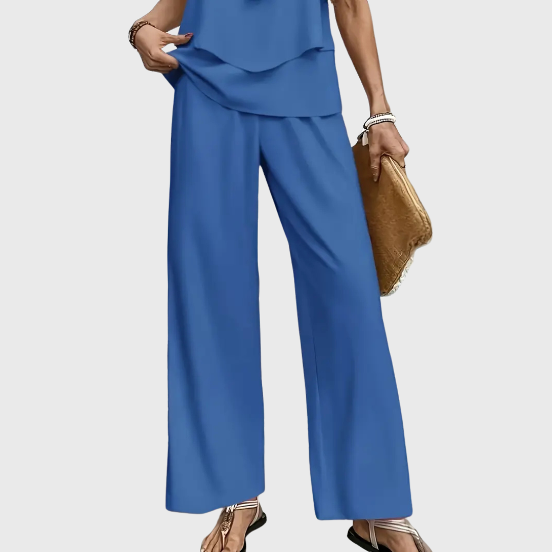 Unser beliebtes Set Cassidy ist der perfekte Begleiter für alle, die Stil und Komfort vereinen möchten. Mit seinem fließenden Schnitt und dem hochwertigen Material sorgt es für einen eleganten Auftritt bei jedem Anlass. Leicht, bequem und absolut im Trend – kein Wunder, dass es zu unseren Bestsellern gehört!