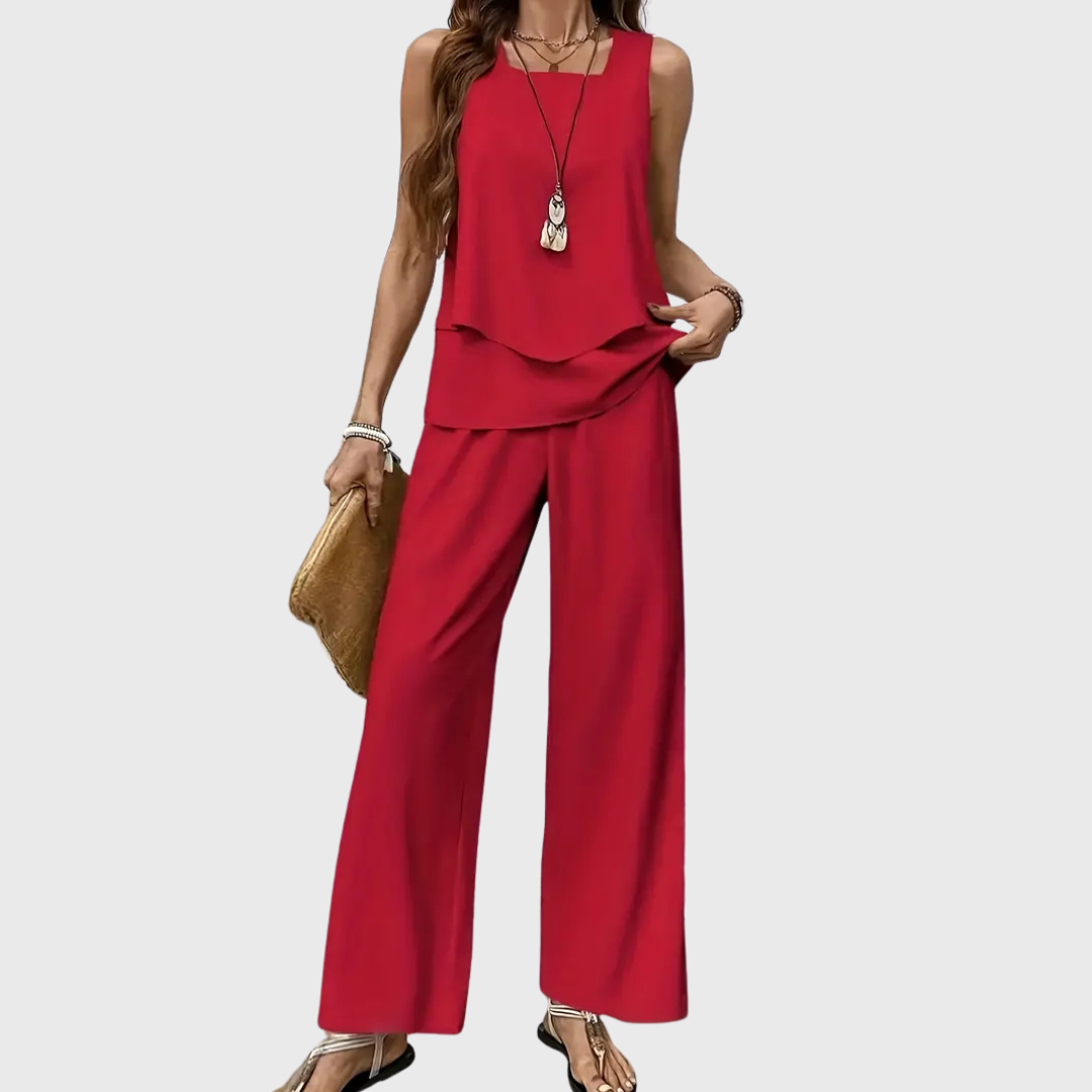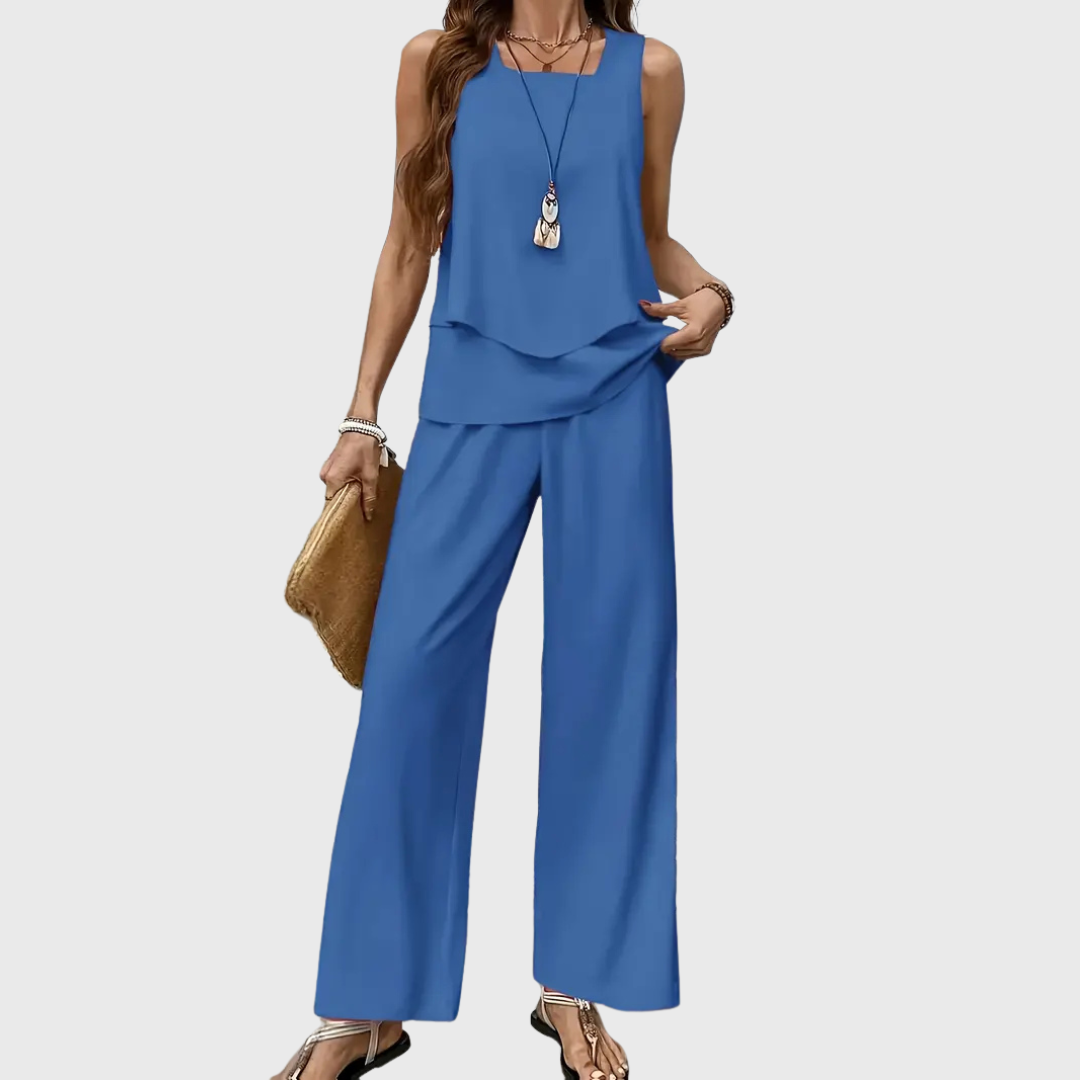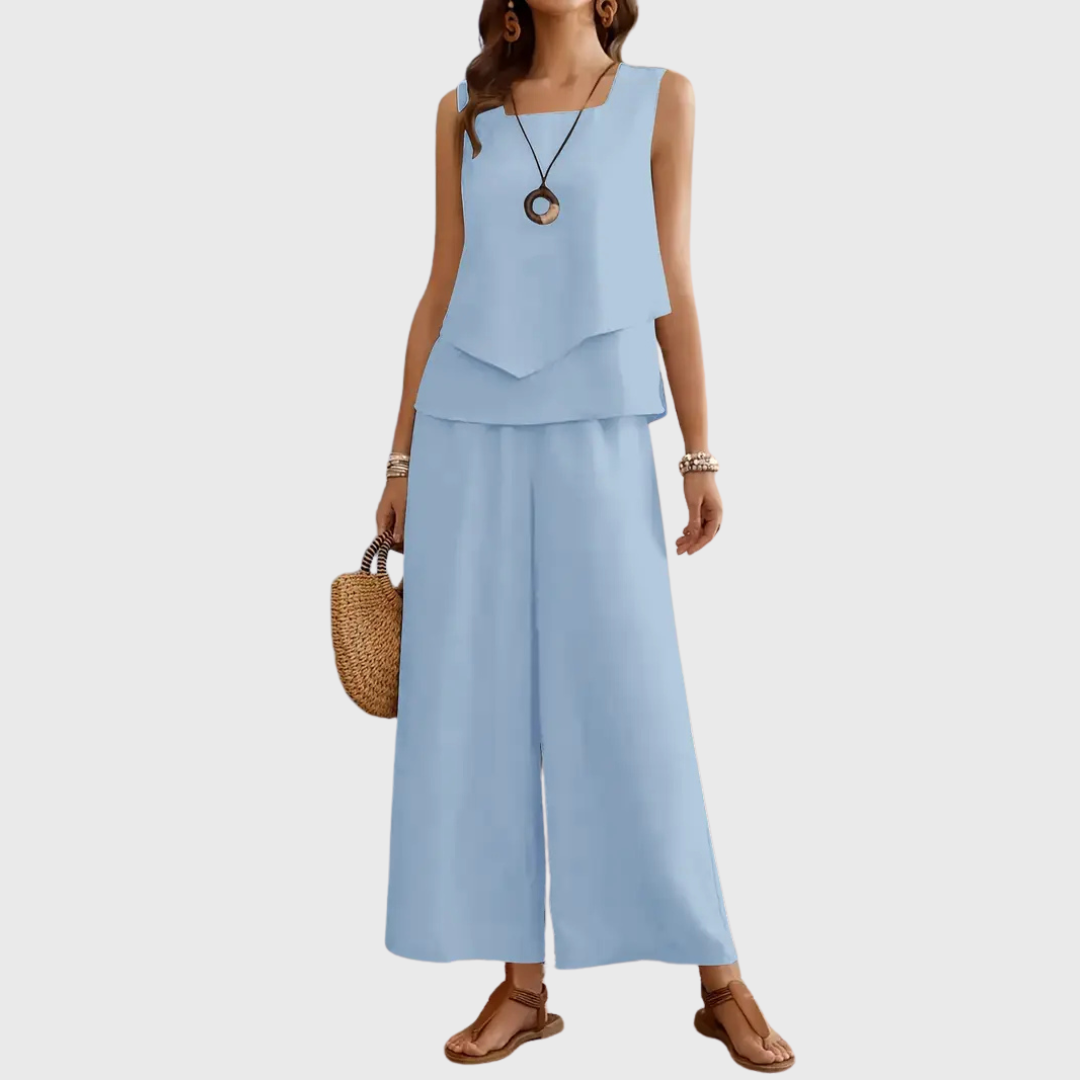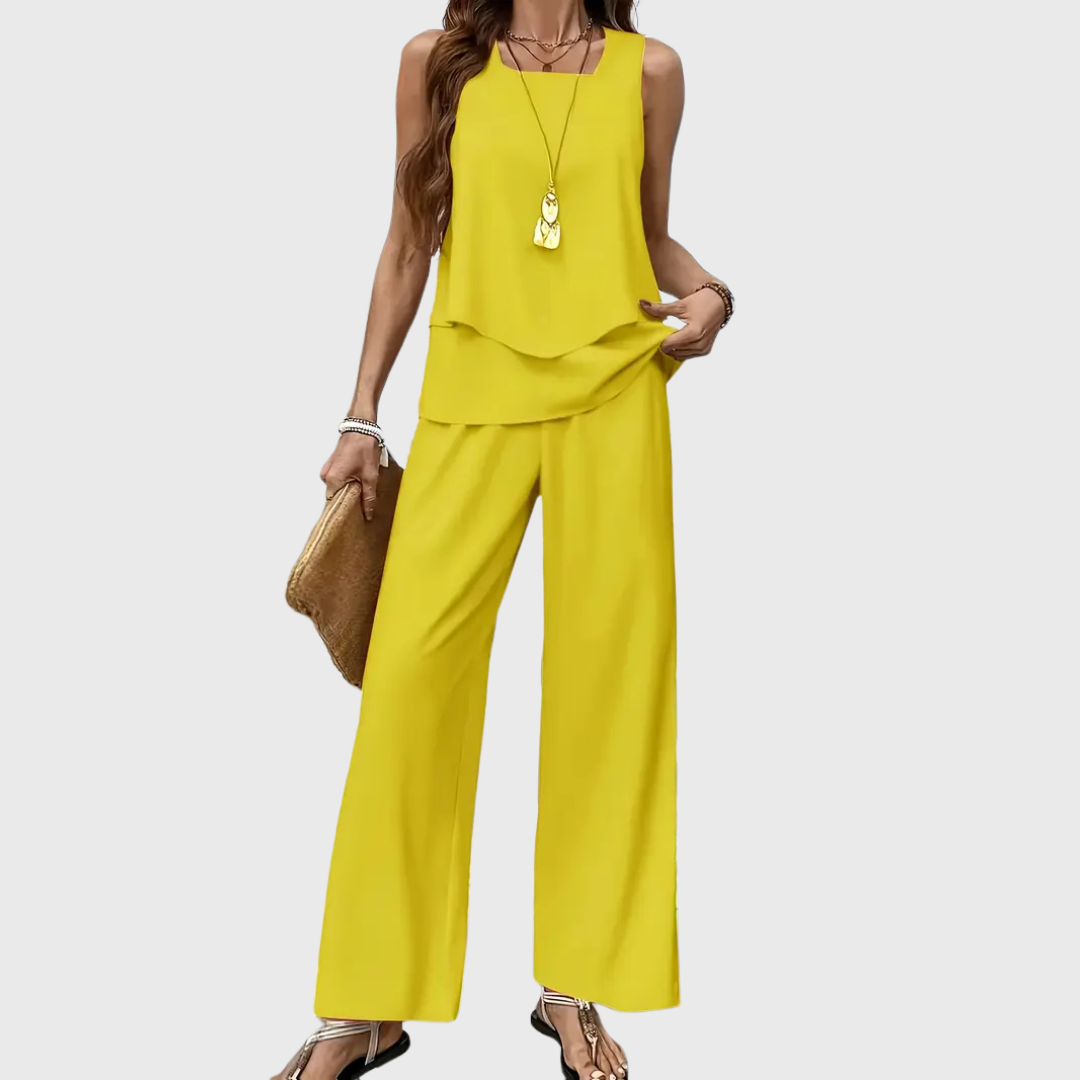 Unser beliebtes Set Cassidy ist der perfekte Begleiter für alle, die Stil und Komfort vereinen möchten. Mit seinem fließenden Schnitt und dem hochwertigen Material sorgt es für einen eleganten Auftritt bei jedem Anlass. Leicht, bequem und absolut im Trend – kein Wunder, dass es zu unseren Bestsellern gehört!