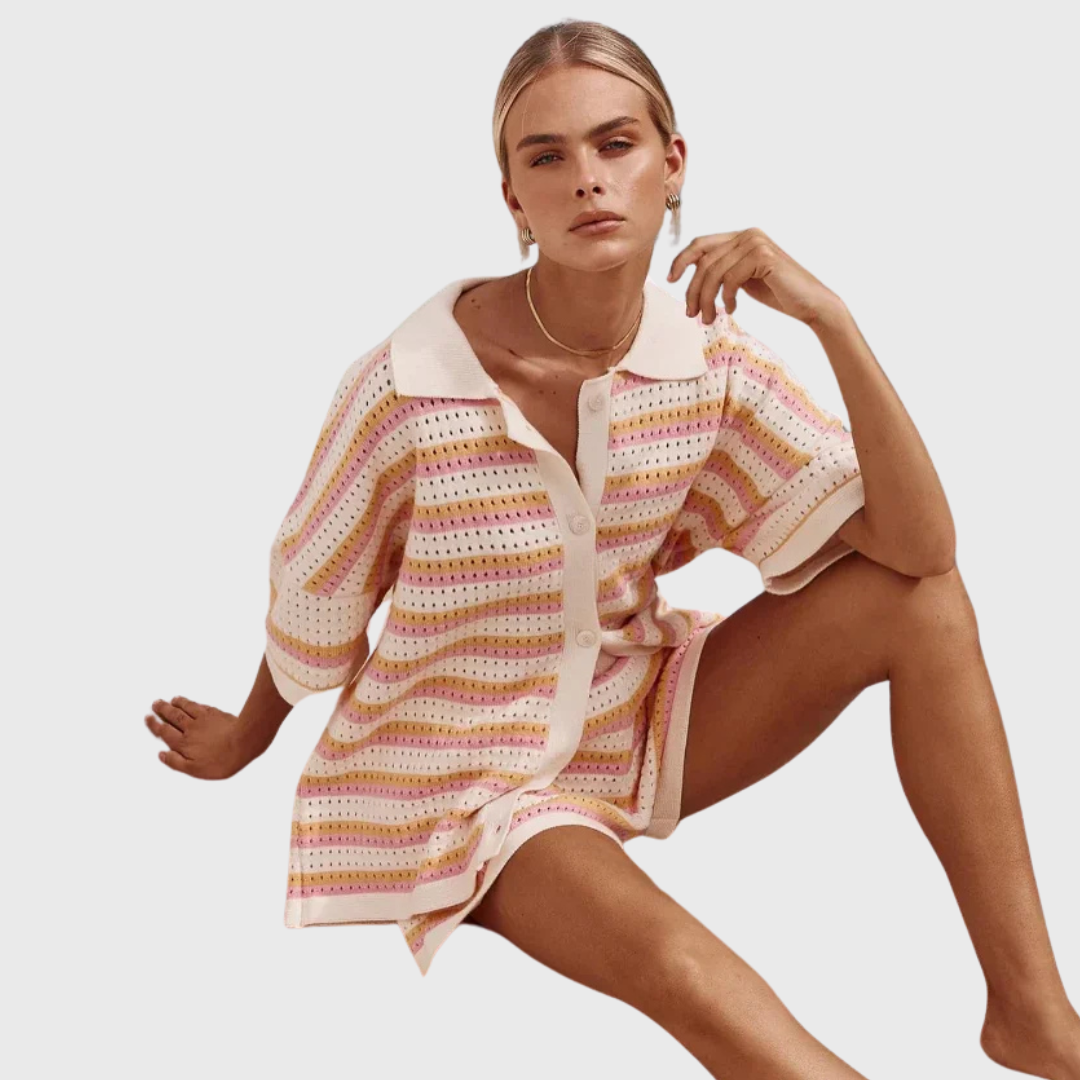 Unser beliebtes Chloe Sommer-Set ist wie gemacht für heiße Tage und entspannte Abende. Leicht, luftig und stylisch – dieses Zweiteiler-Set bringt alles mit, was du für einen frischen Sommerlook brauchst. Es ist bequem, sieht schick aus und lässt sich super einfach kombinieren – ideal für Alltag und Urlaub!