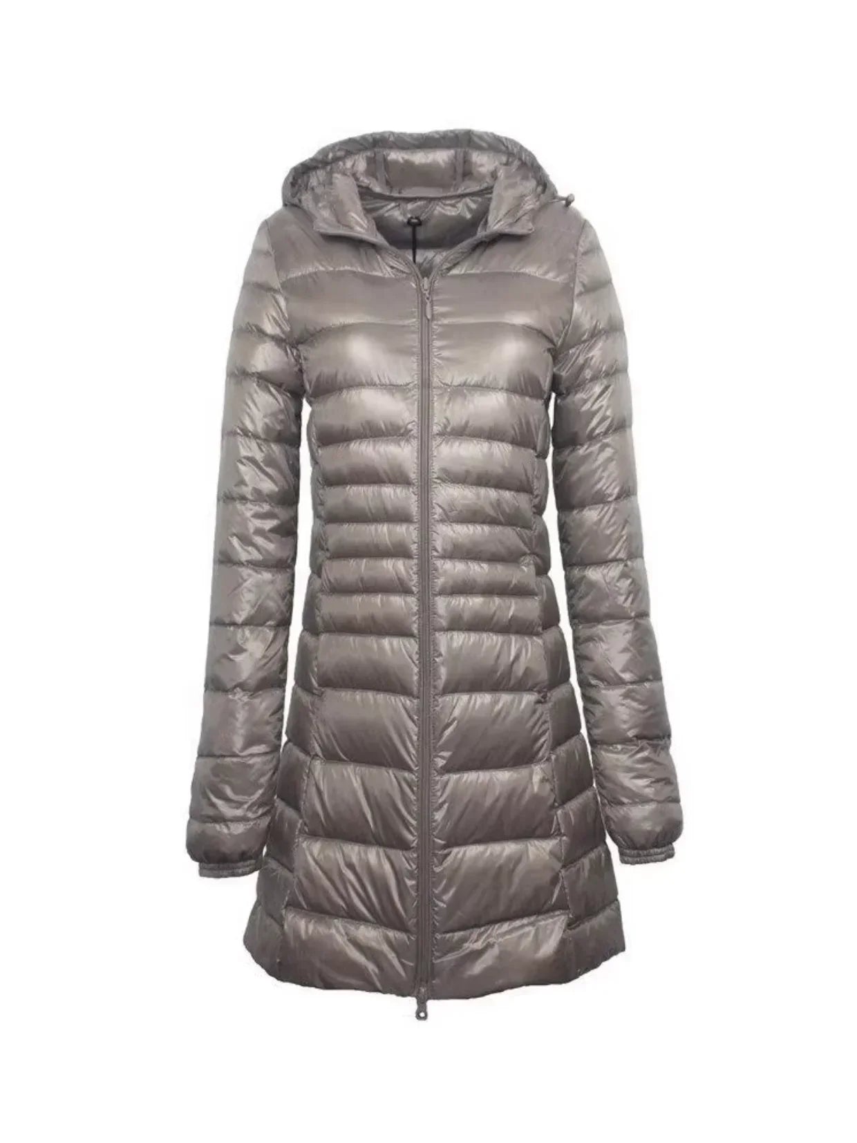 Damen Lange Steppmantel mit Kapuze