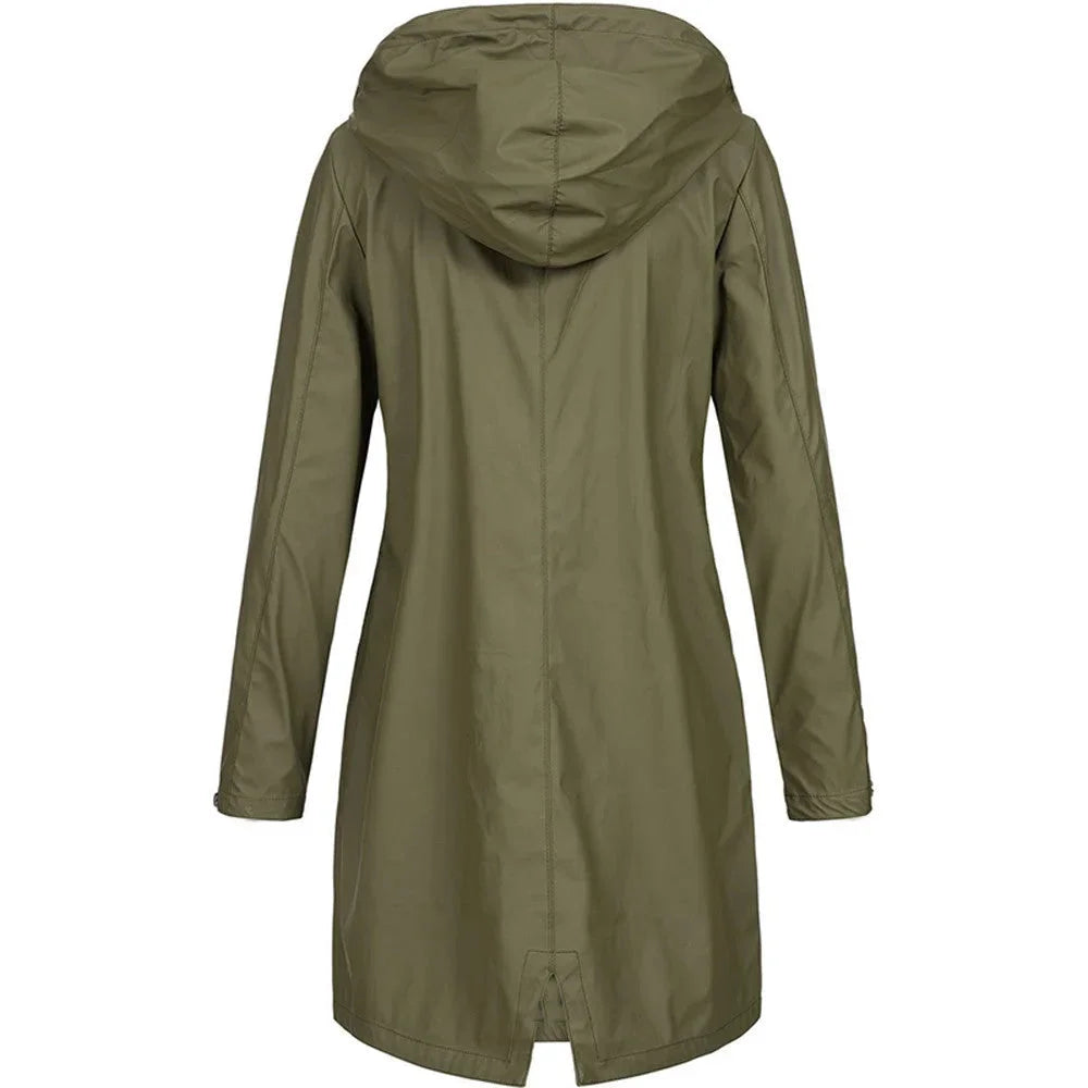 Dieser Damen Regenmantel mit Kapuze vereint Funktionalität und Stil und ist der perfekte Begleiter für die kühlen Tage. Mit seinem eleganten Design und praktischen Details bietet er Komfort und Schutz bei jedem Wetter.