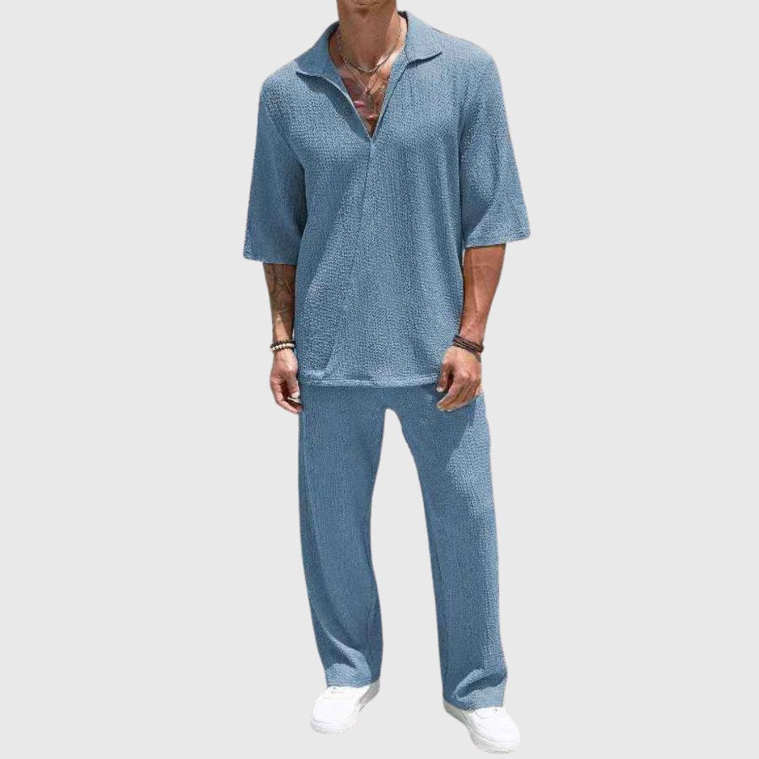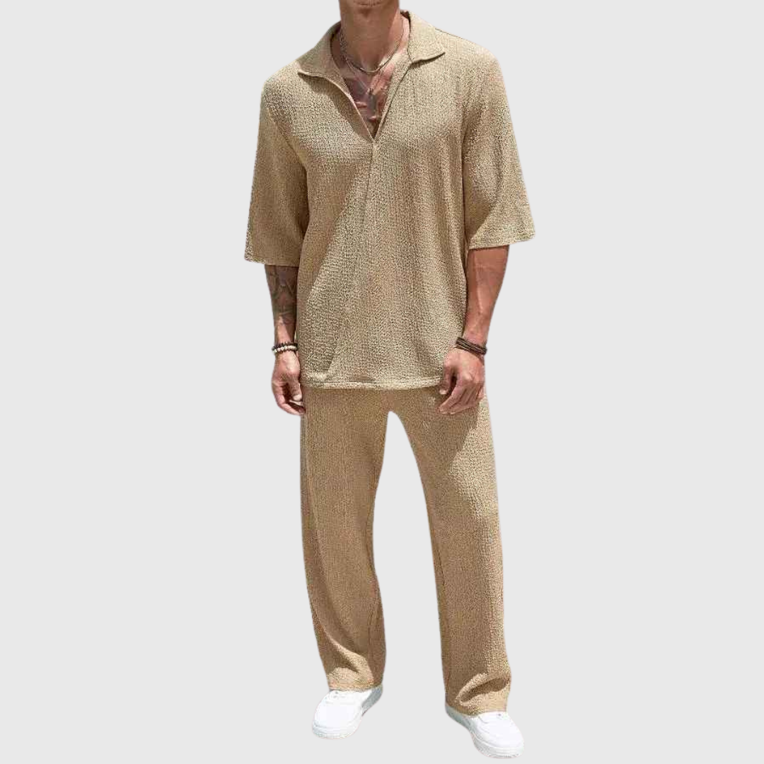 Unser beliebtes Sommer-Set kombiniert Komfort mit modernem Look – perfekt für alle, die Wert auf vegane Materialien und entspannte Outfits legen. Das leichte, luftige Design macht es zum idealen Begleiter für Freizeit, Urlaub oder einen lässigen Stadtbummel. Angenehm auf der Haut und dabei absolut stylisch – ein Must-have der Saison!
