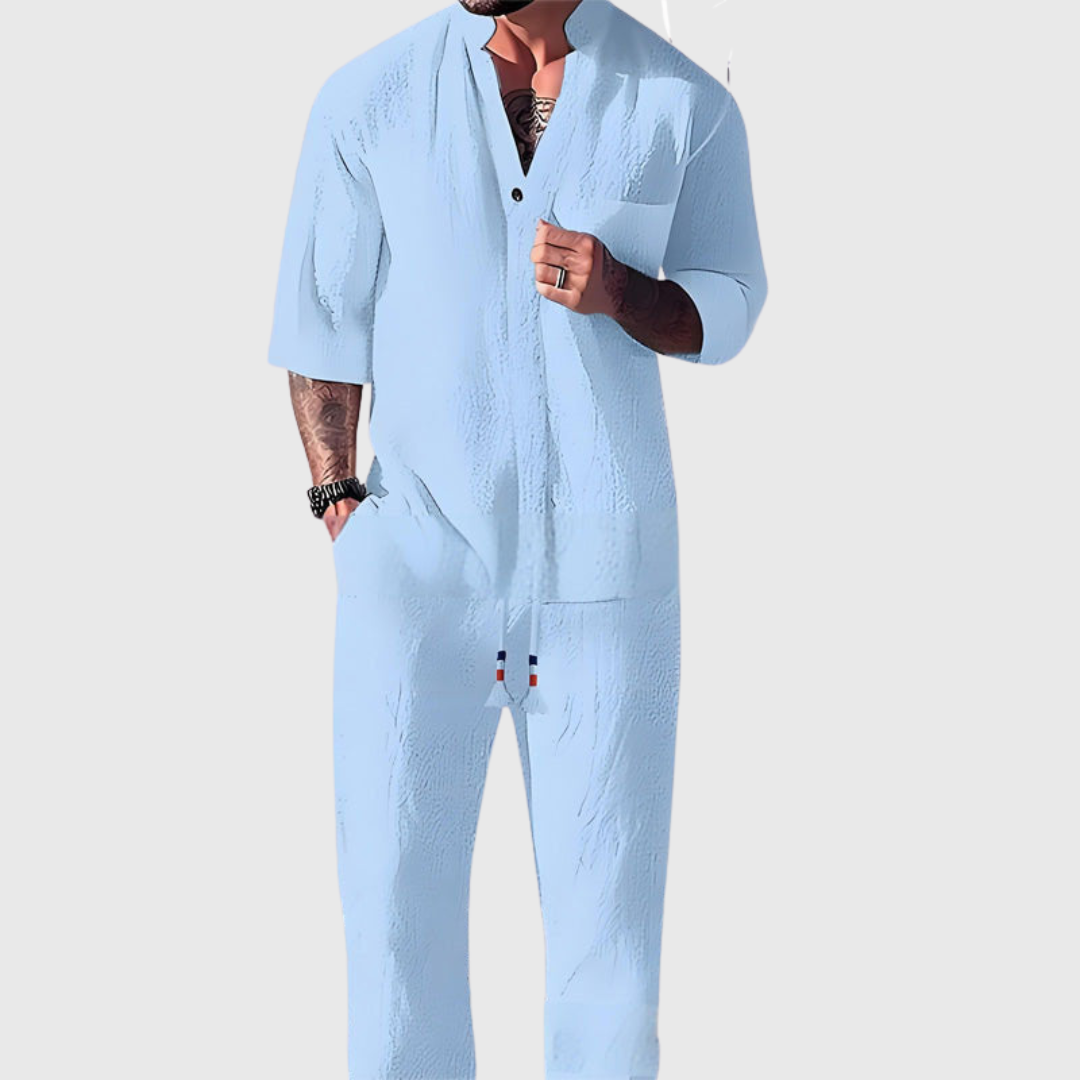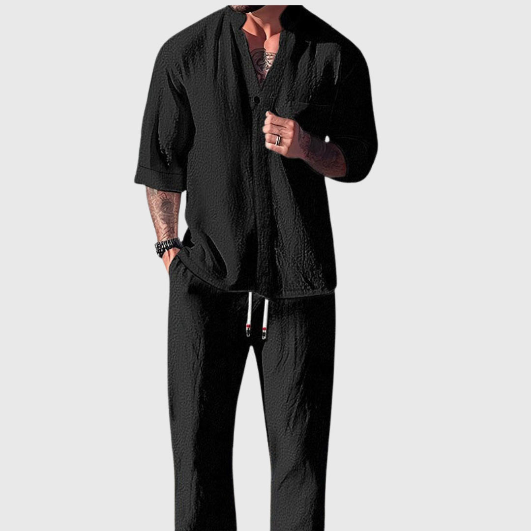 Unser beliebtes Set ist ideal für Männer, die sich stilvoll und bequem kleiden wollen – ganz ohne Aufwand. Ob für den Alltag, Urlaub oder entspannte Wochenenden: Mit diesem Look bist du immer lässig und modern unterwegs. Die Kombination aus lockerer Passform und durchdachtem Design sorgt für maximalen Komfort und einen coolen Auftritt.