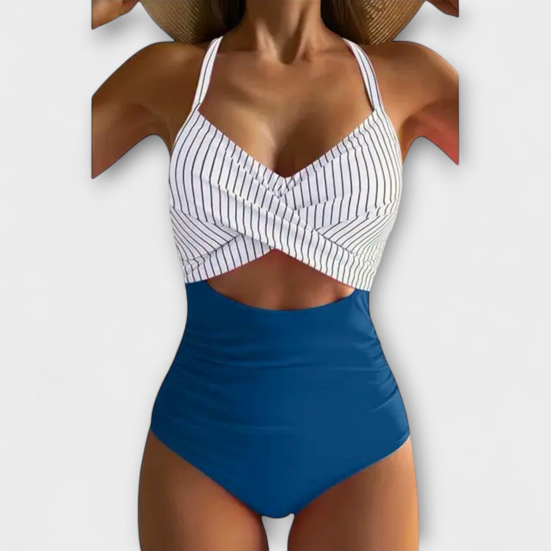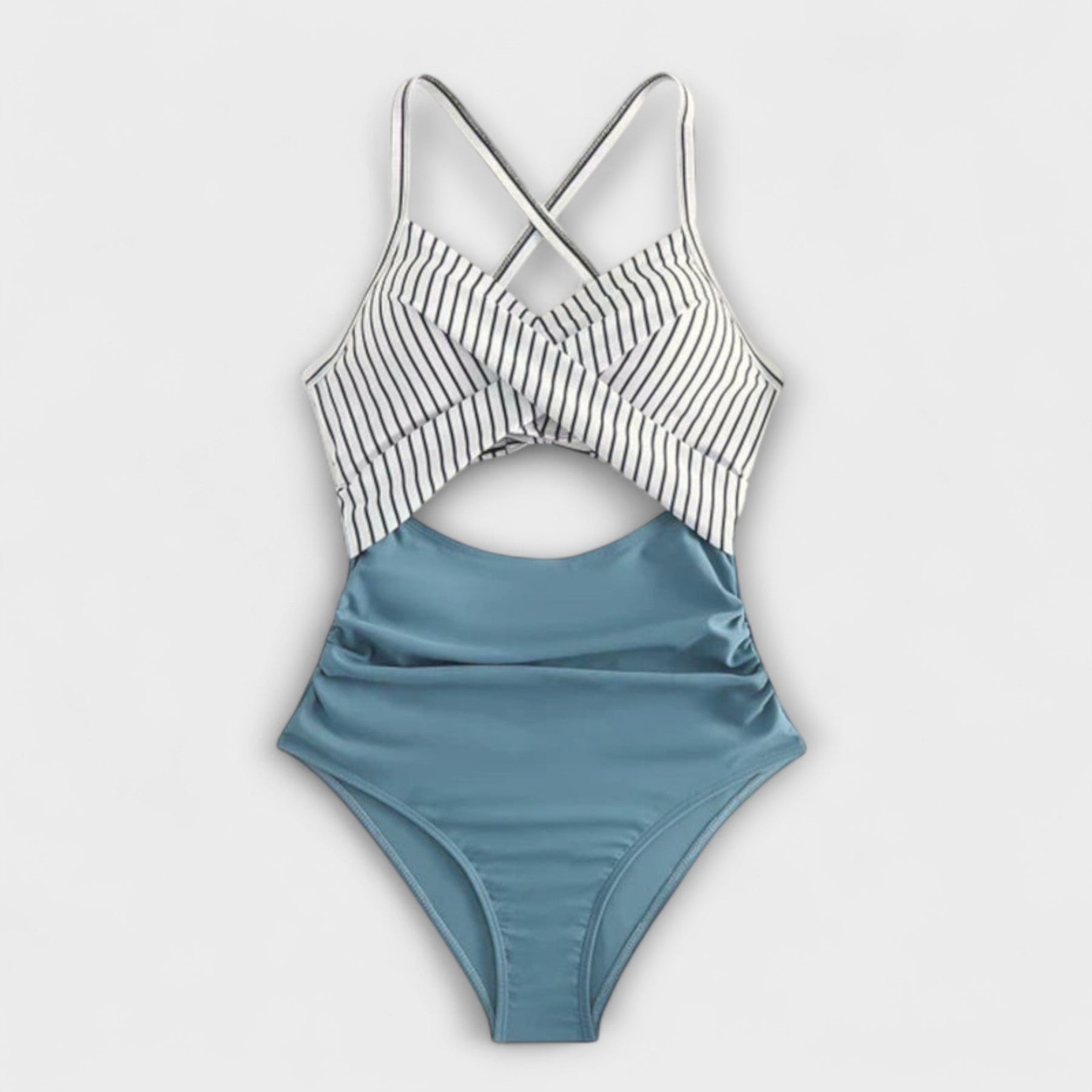 Fühlen Sie sich schön und wohl in dem Georgia Badeanzug – perfekt für Frauen, die Eleganz schätzen, ohne zu viel zu zeigen. Das Crossover-Oberteil mit subtilen Ausschnitten betont die Taille und lenkt die Aufmerksamkeit vom Bauch ab. Die höheren Hosen und gepolsterten Cups bieten Sicherheit und Komfort, während der offene Rücken mit eleganten Trägern für einen Hauch von Stil sorgt.