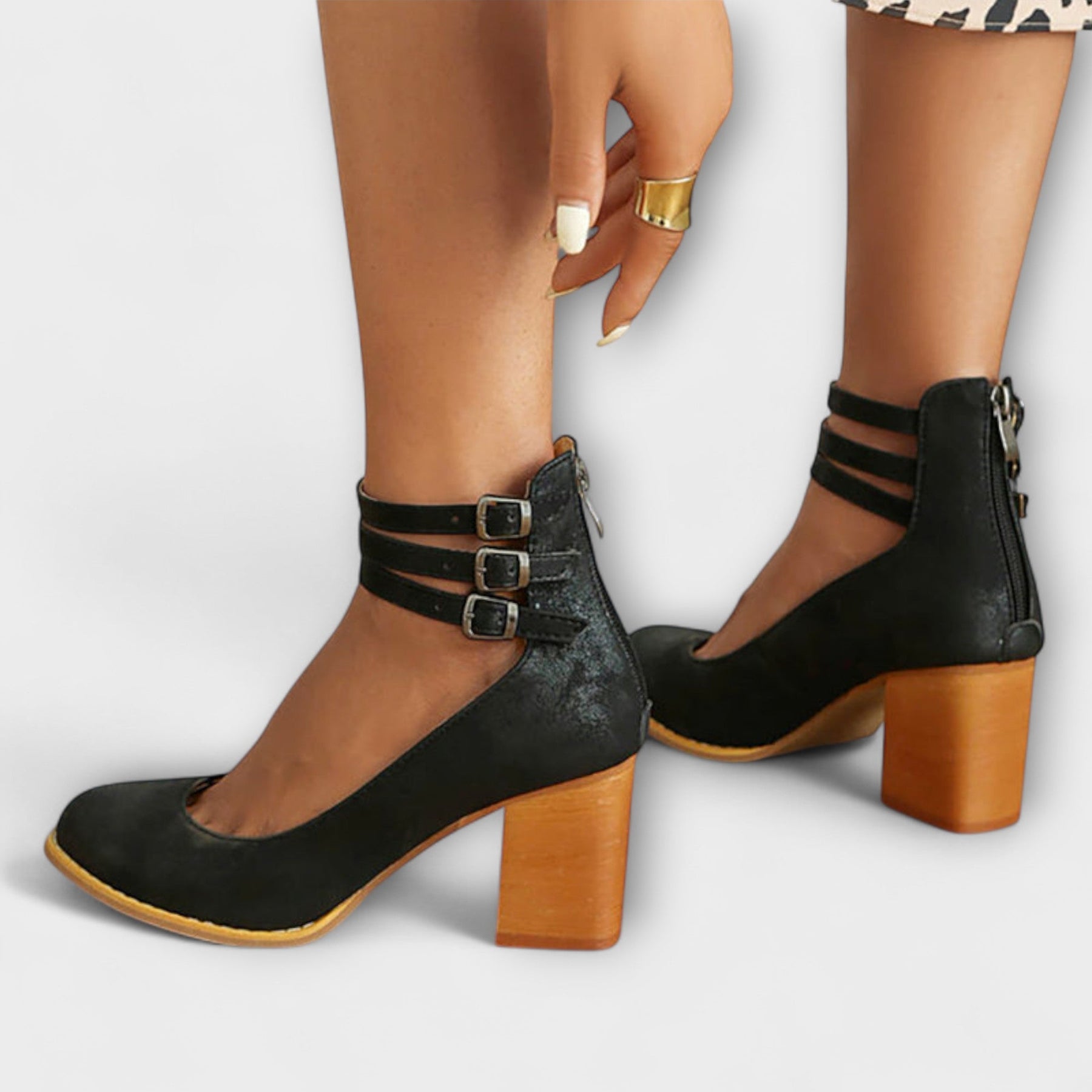 Hannah - Klobige Absätze mit lässigen Knöchelriemen