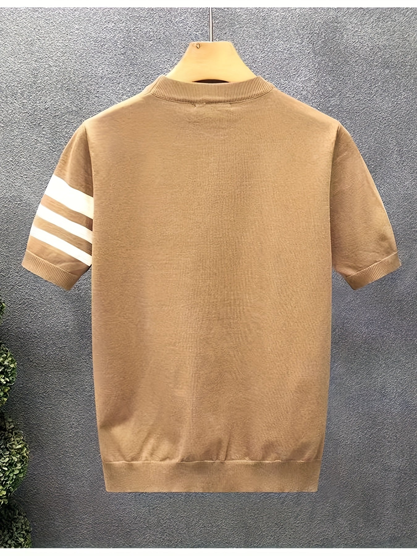 Stilvoller Minimalismus mit dem gewissen Etwas: Die dezenten, aber auffälligen Streifen auf der Vorderseite und den Ärmeln verleihen dem T-Hemd einen einzigartigen Charakter, ohne Ihren Stil zu überladen. Das ausgewogene Entwurf ist moderne und schlicht zugleich und eignet sich sowohl für die Arbeit im Homeoffice als auch für Ausflüge in die Stadt.
