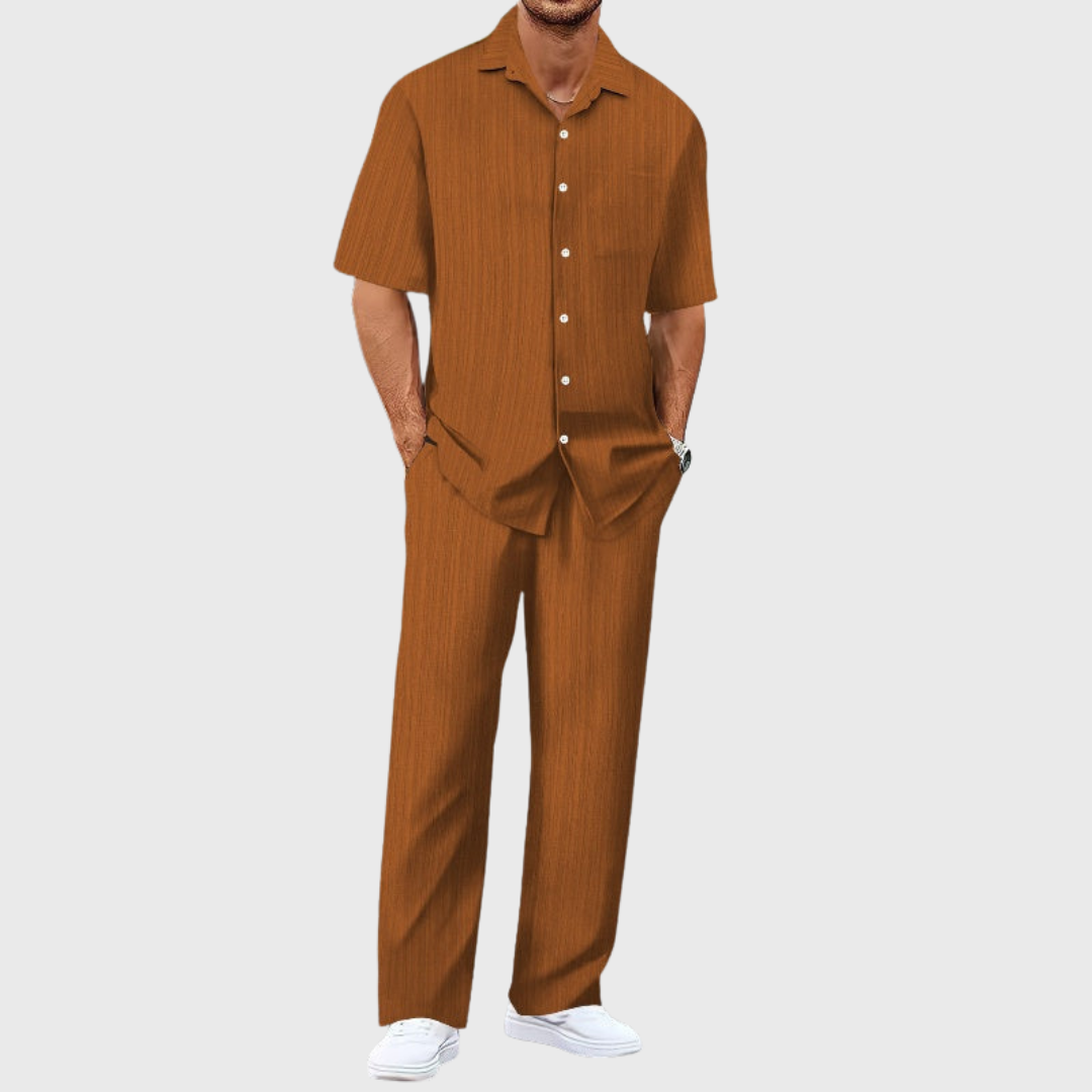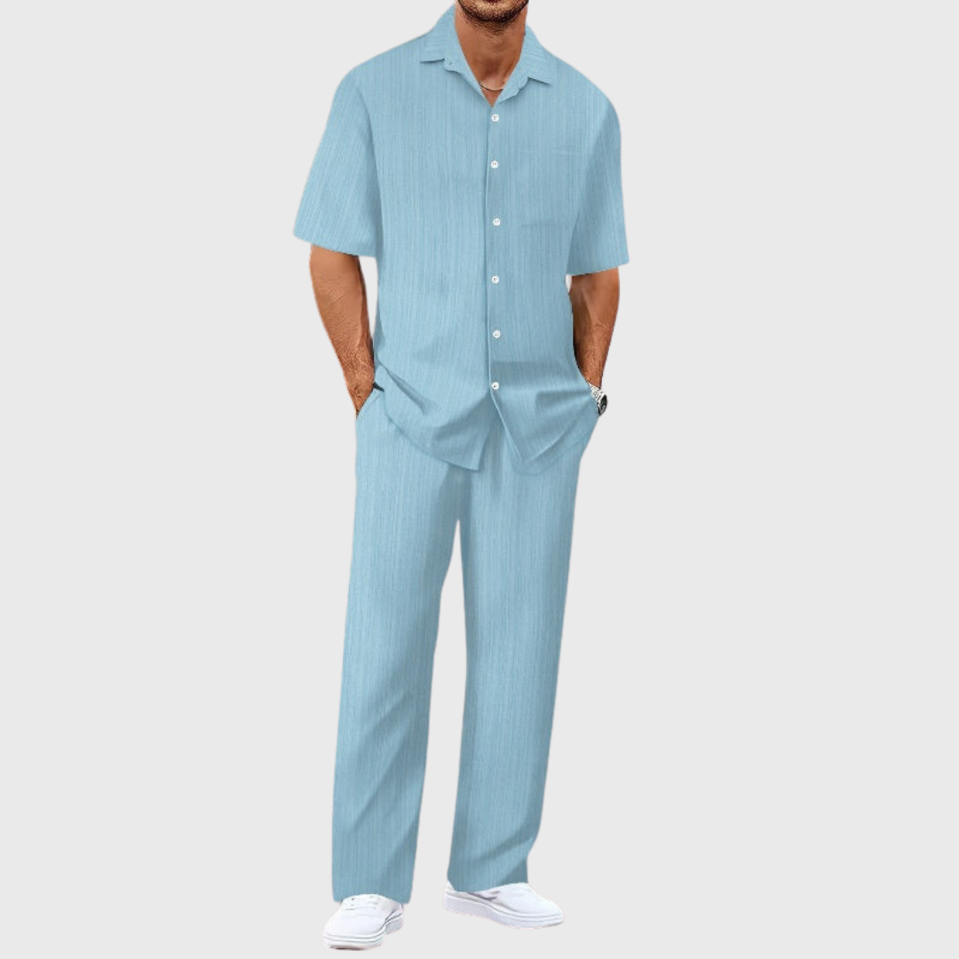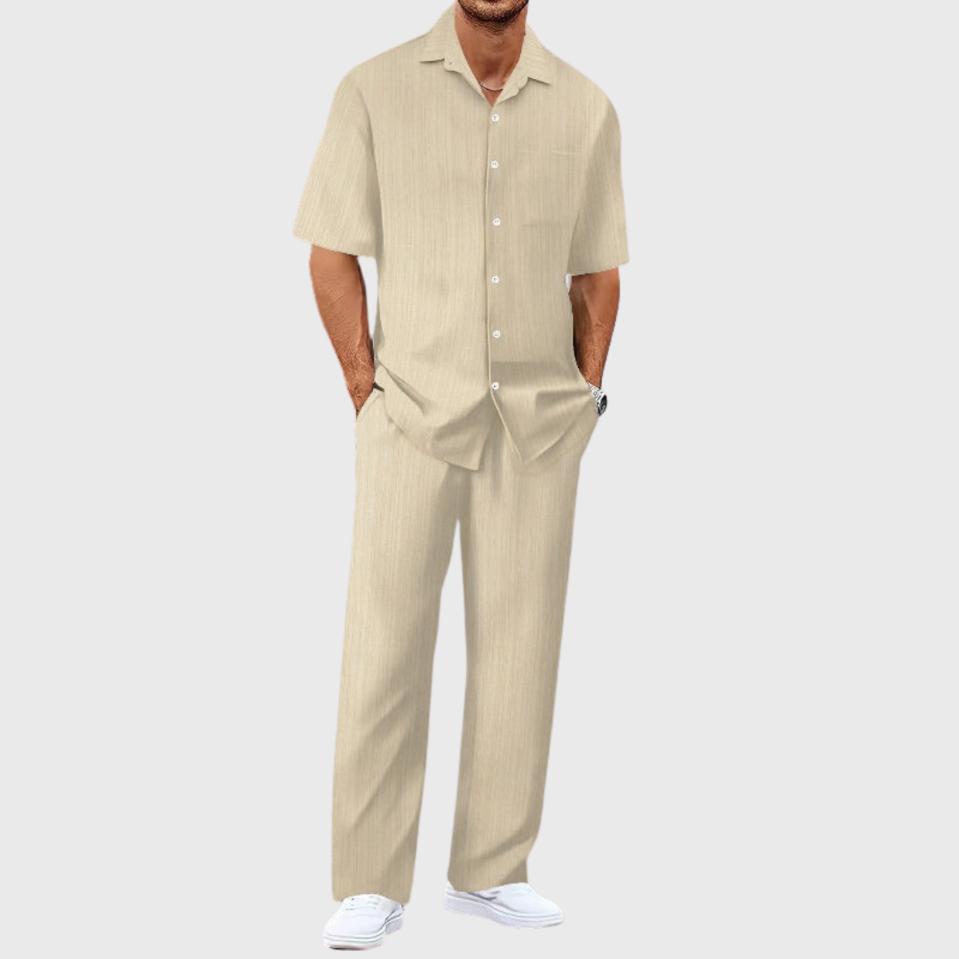 Unser beliebtes Julian-Set vereint mühelosen Stil mit einem entspannten Fit – perfekt für warme Tage und entspannte Abende. Das Set wurde entworfen, um Komfort und Leichtigkeit in deinen Alltag zu bringen – ob zu Hause, im Urlaub oder beim Stadtbummel. Die hochwertige Verarbeitung sorgt für ein angenehmes Gefühl auf der Haut und einen Look, der überzeugt.