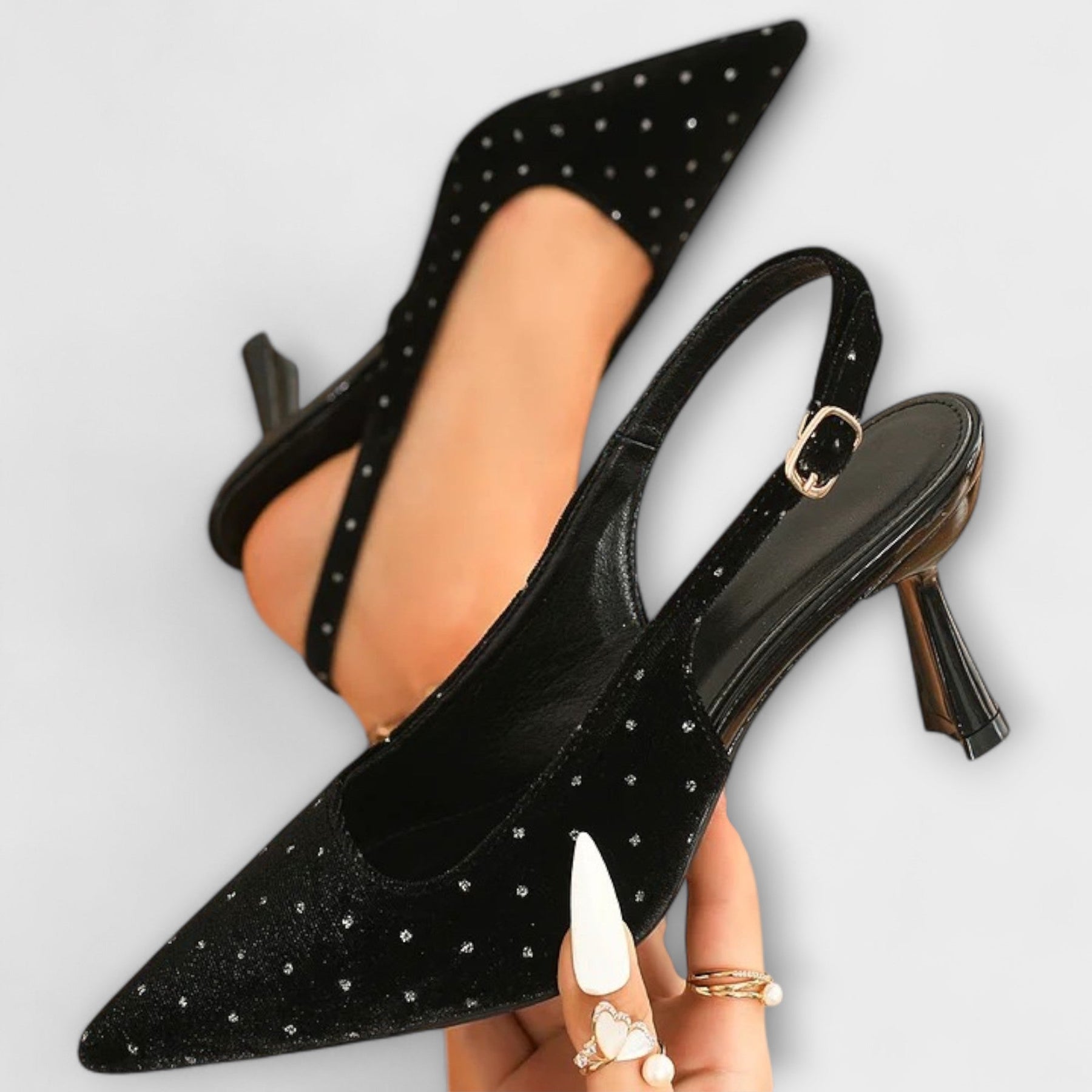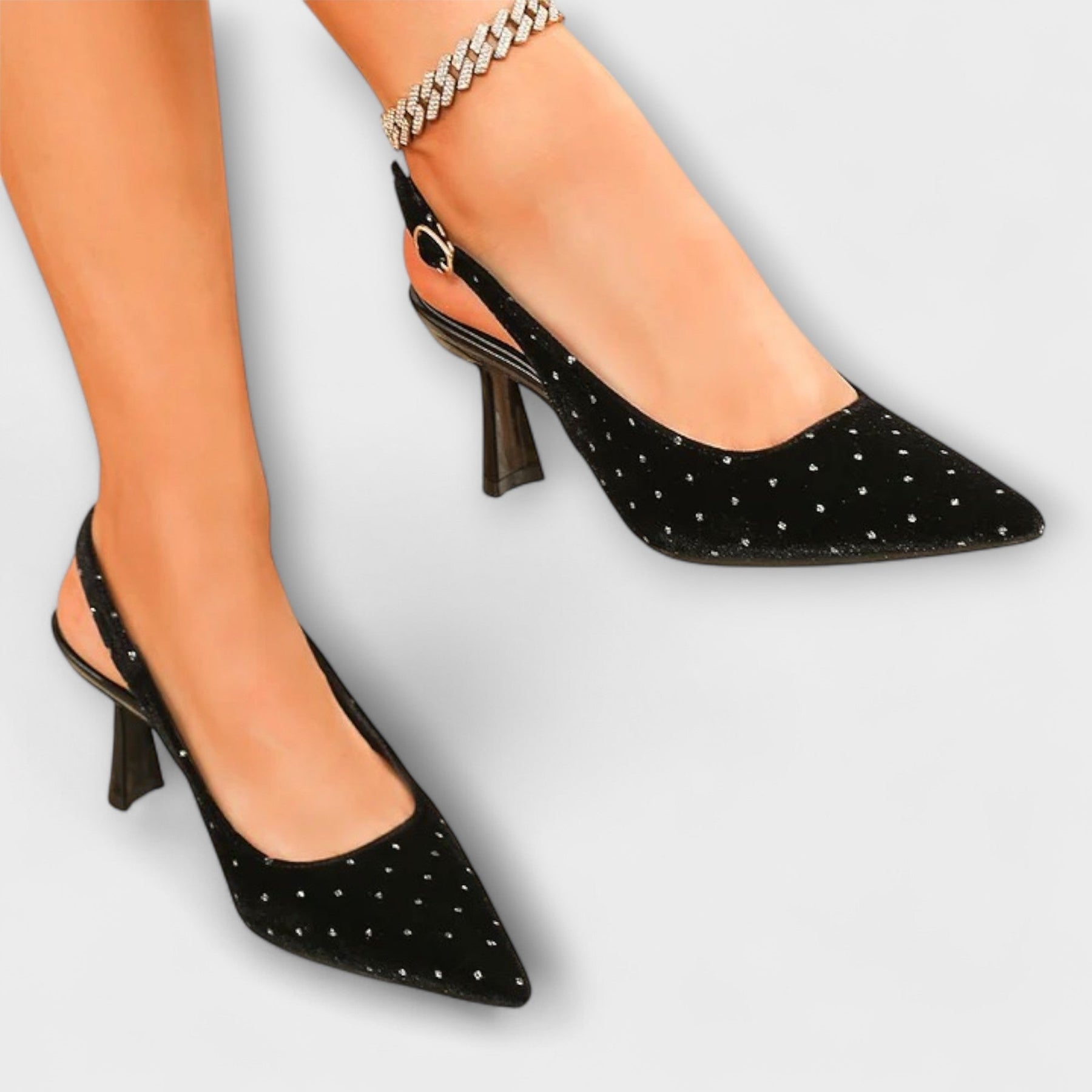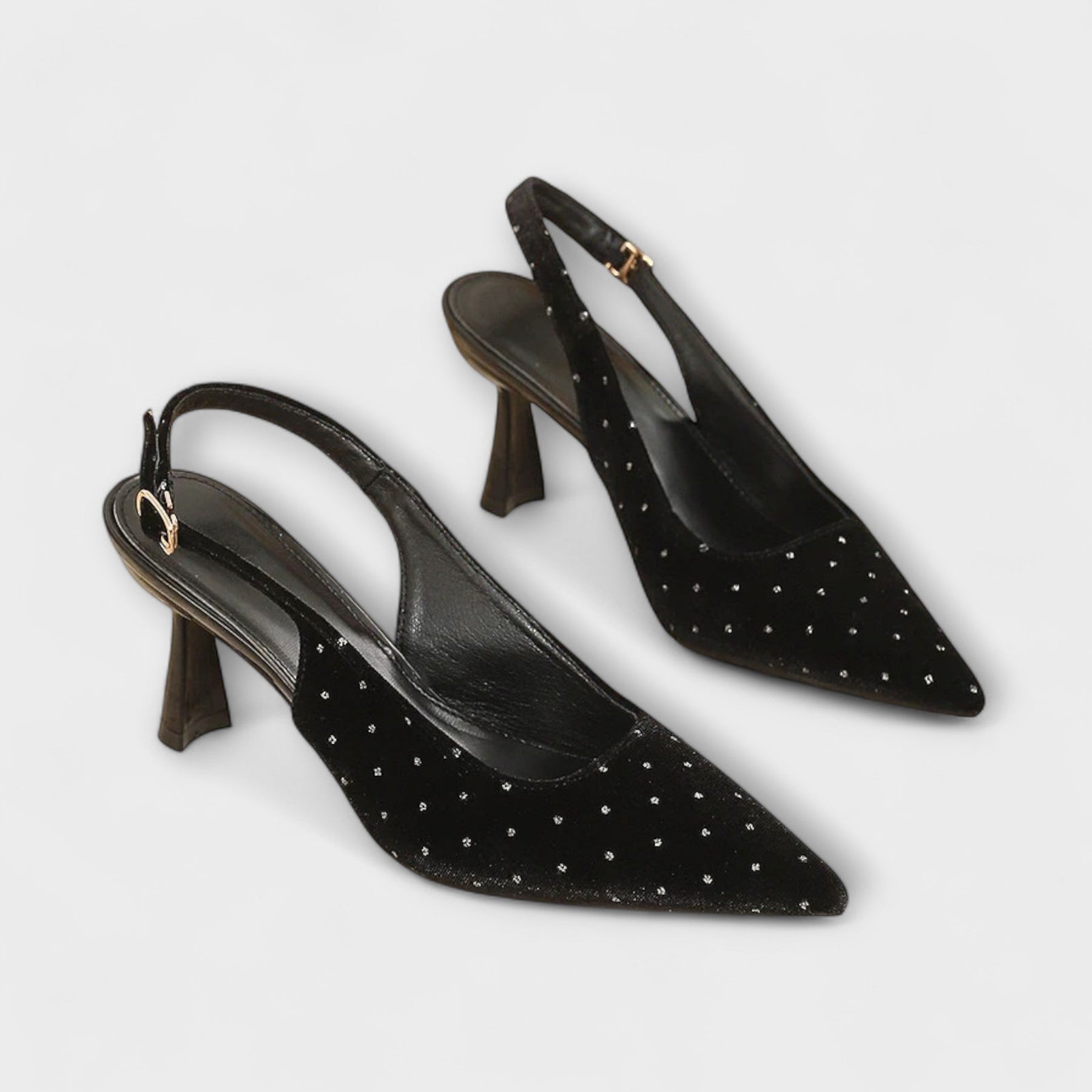 Katherine - Mit Strasssteinen besetzte spitze Slingback-Stiletto-Heels