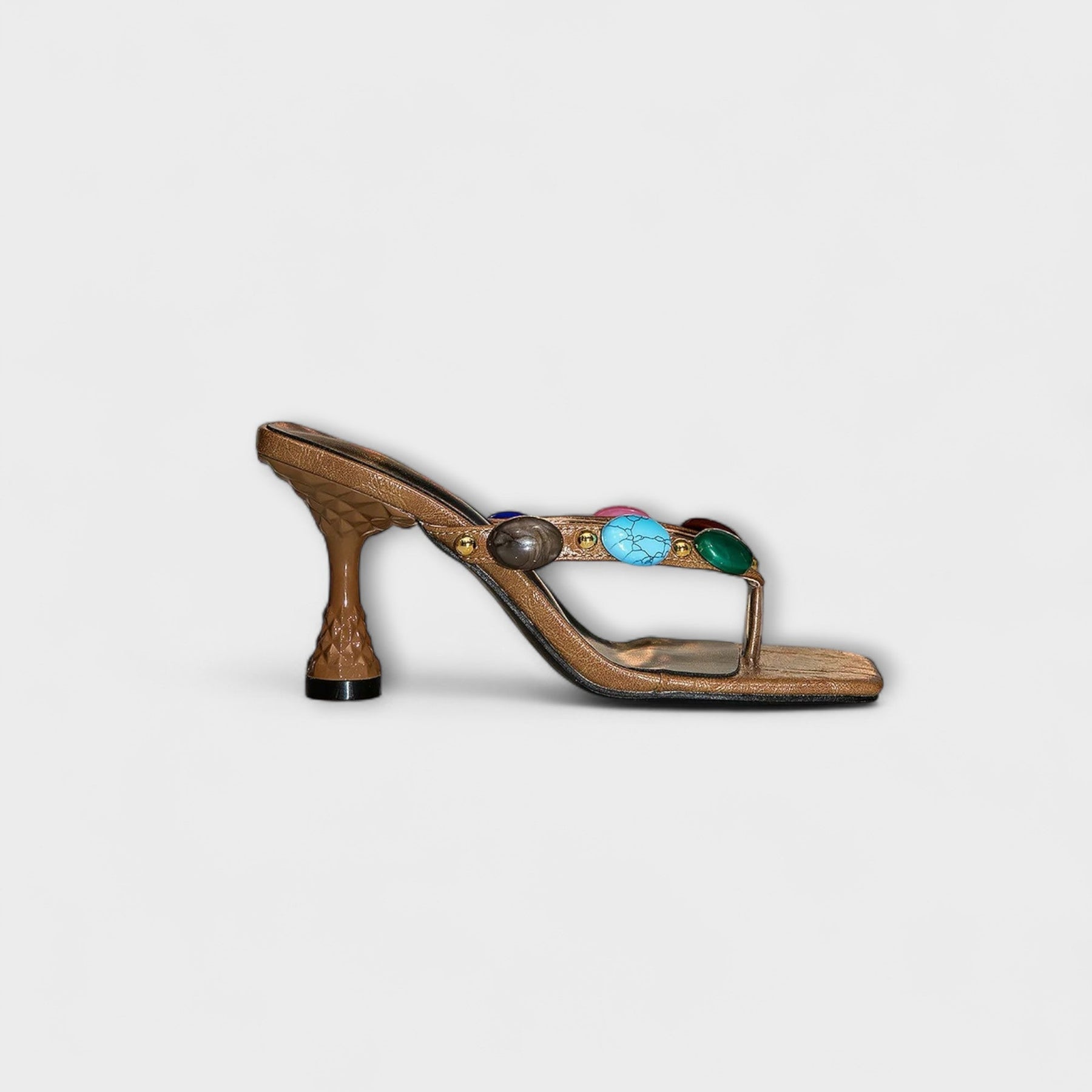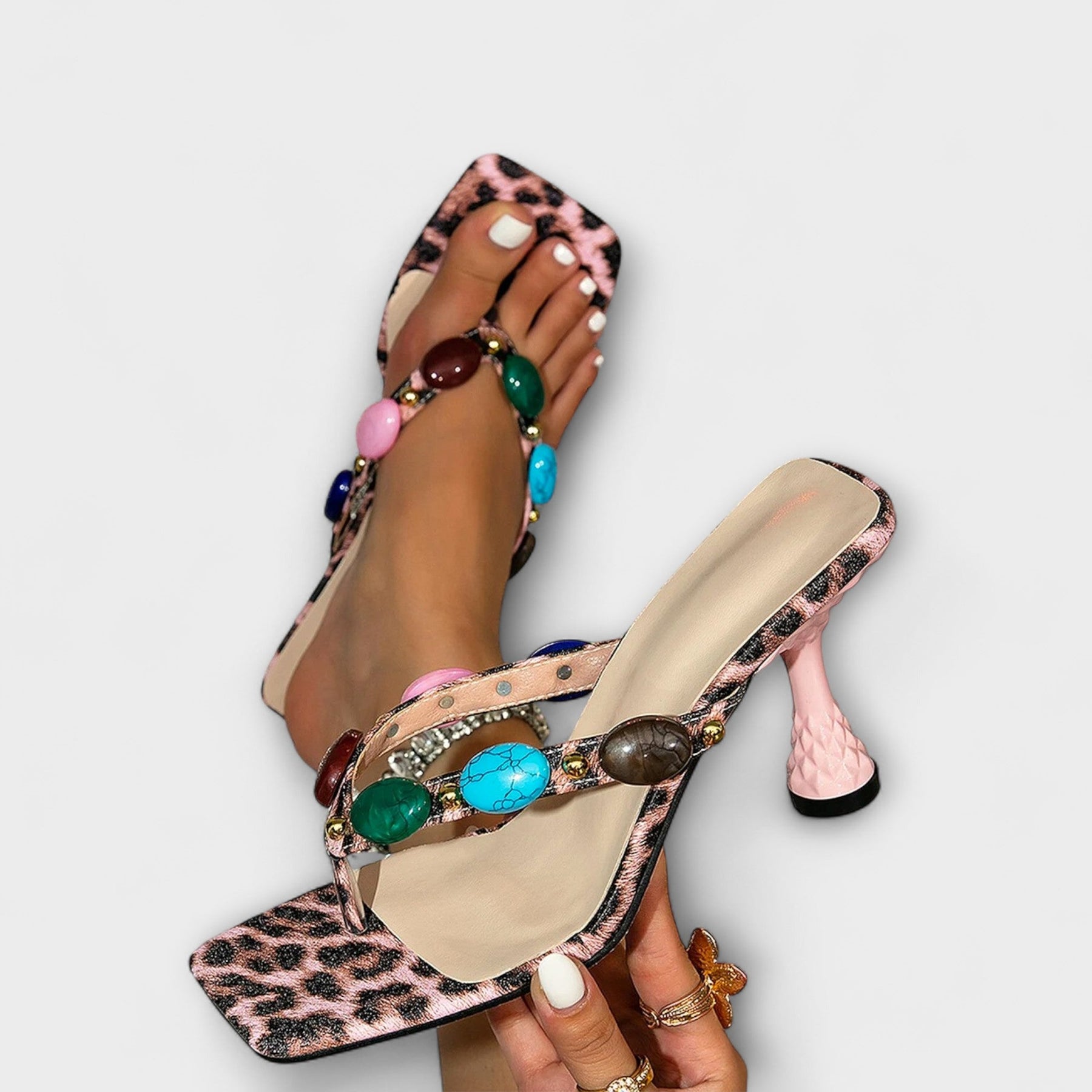 Kristen - Mehrfarbige Sandalen mit Edelsteinverzierung