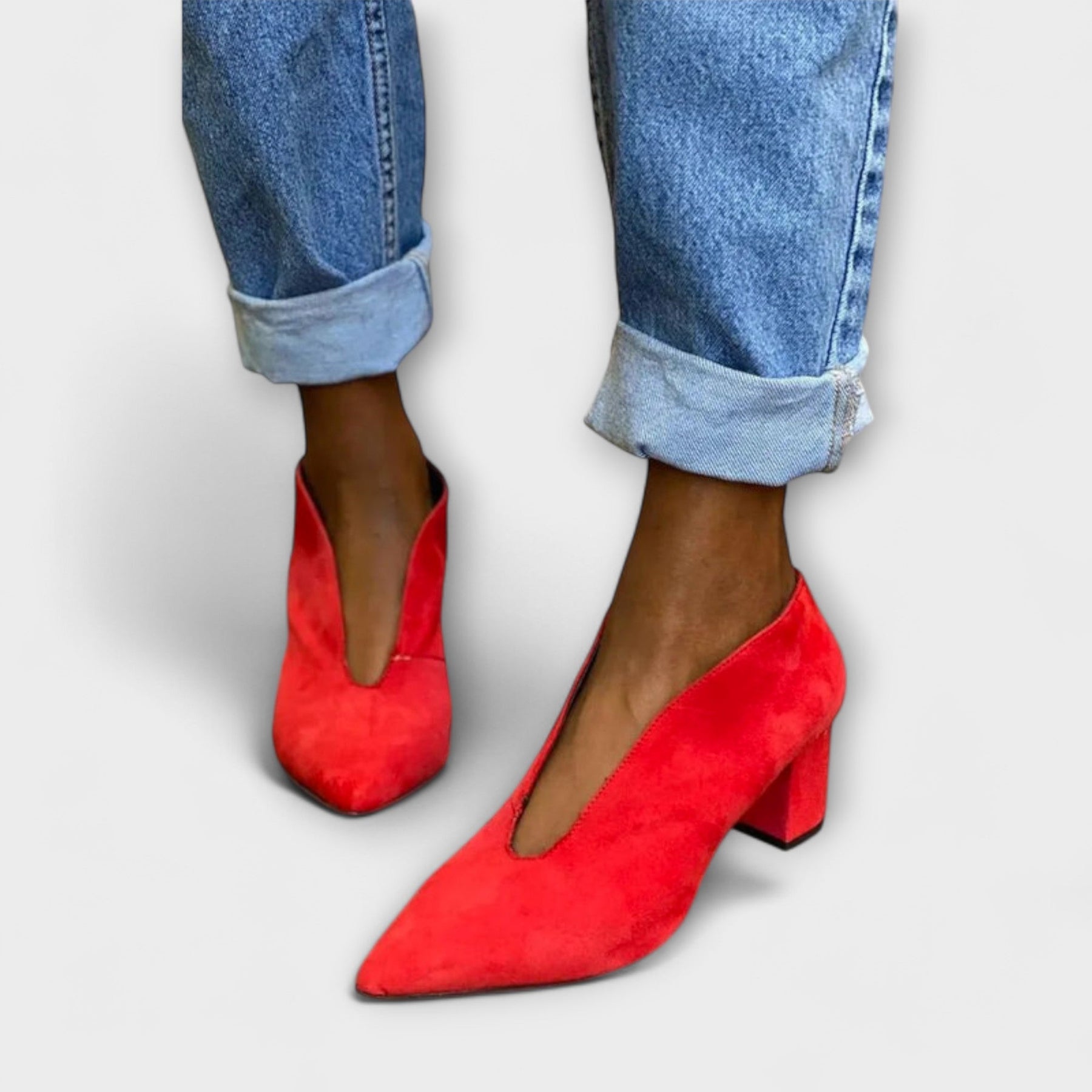 Mit einer langlebigen Gummisohle können Sie selbstbewusst auftreten, da diese Absätze hervorragenden Halt und Unterstützung bieten. Sie sind in der regulären Größe erhältlich und perfekt für den ganztägigen Tragekomfort, egal ob Sie ins Büro gehen oder einen Abend in der Stadt verbringen.