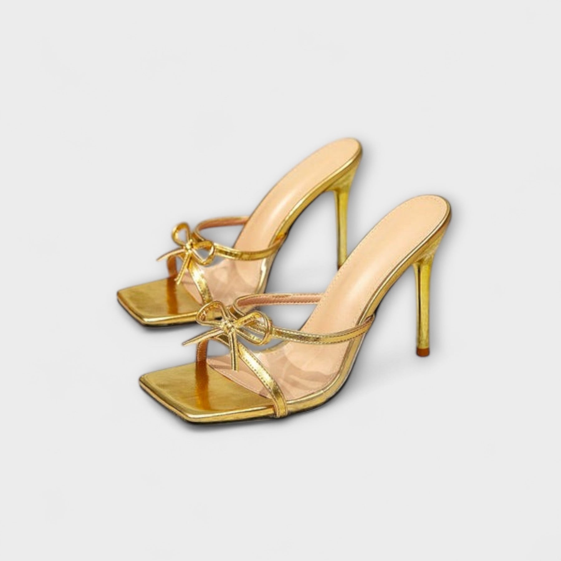 Megan - Metallic-Schleifen-Akzent-Patchwork-Stiletto-Absatzschuhe