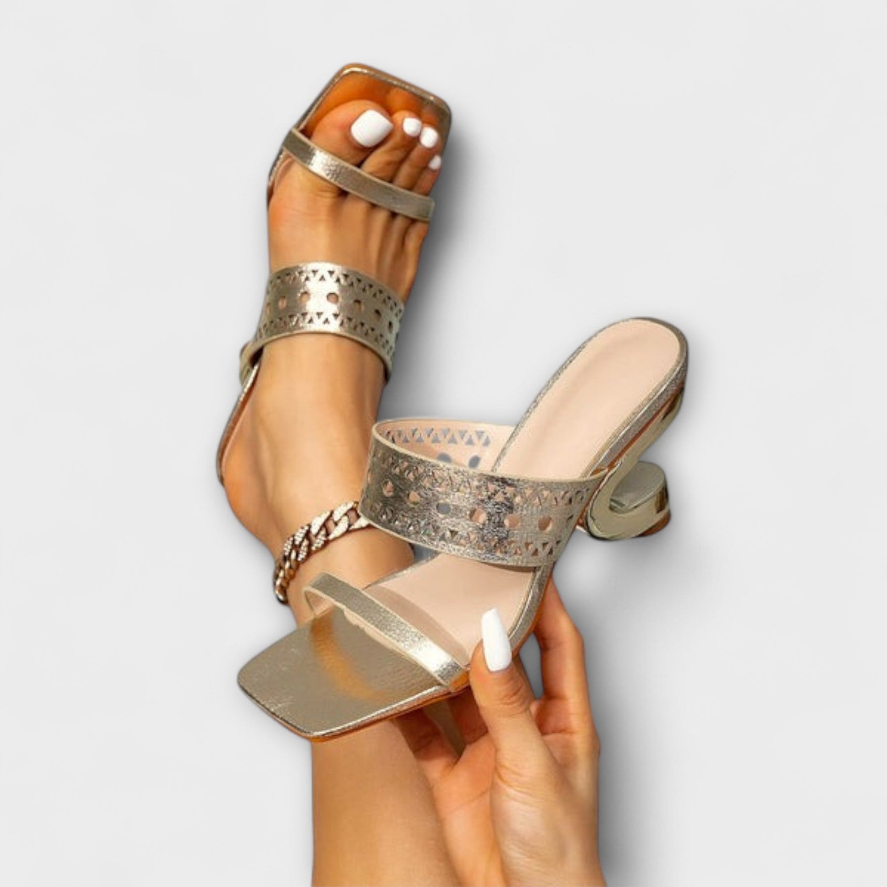 Molly - Metallic-Glanz Hohl-Sandale mit eckiger Zehenpartie