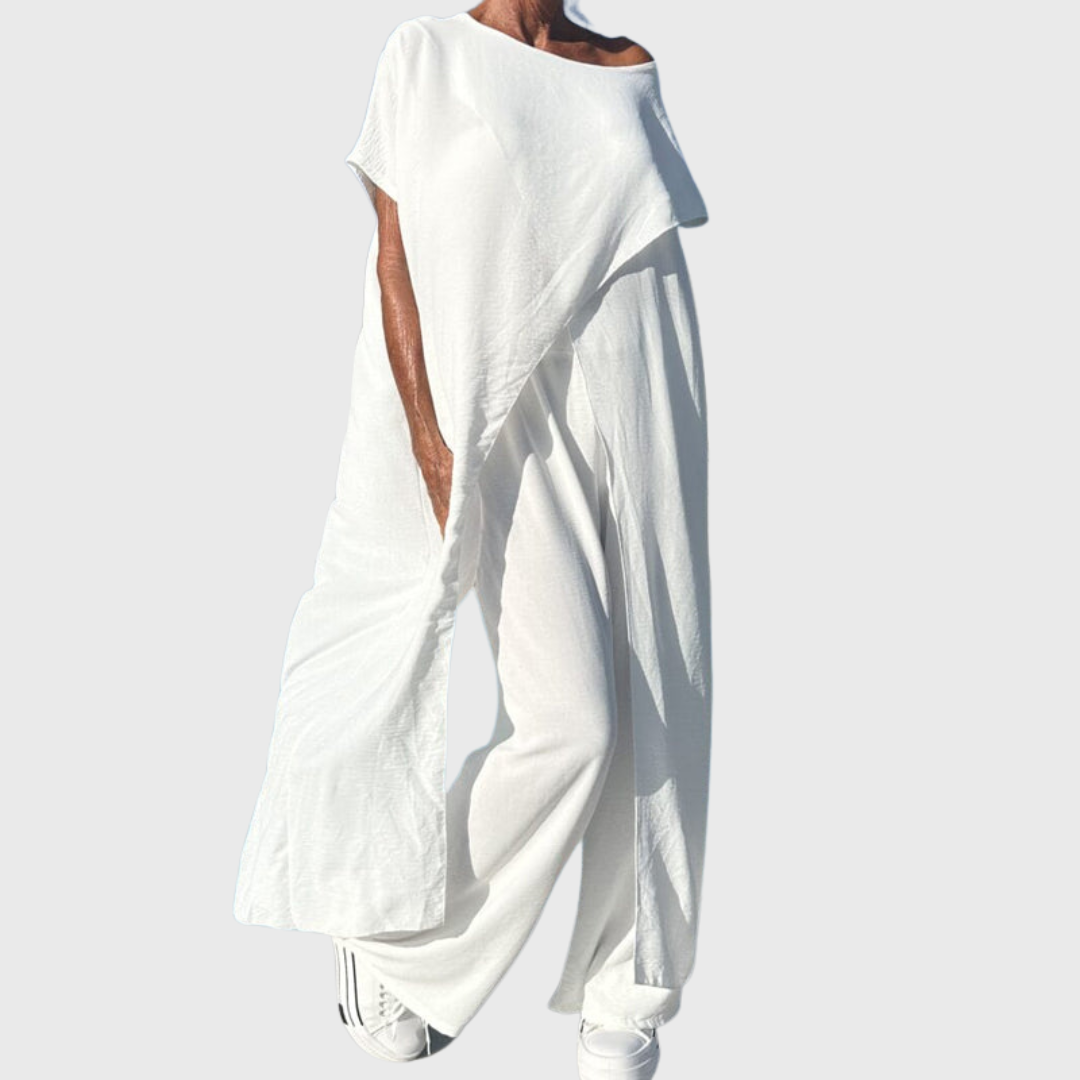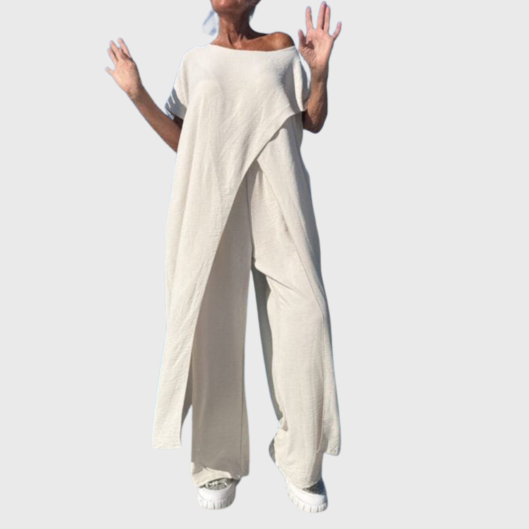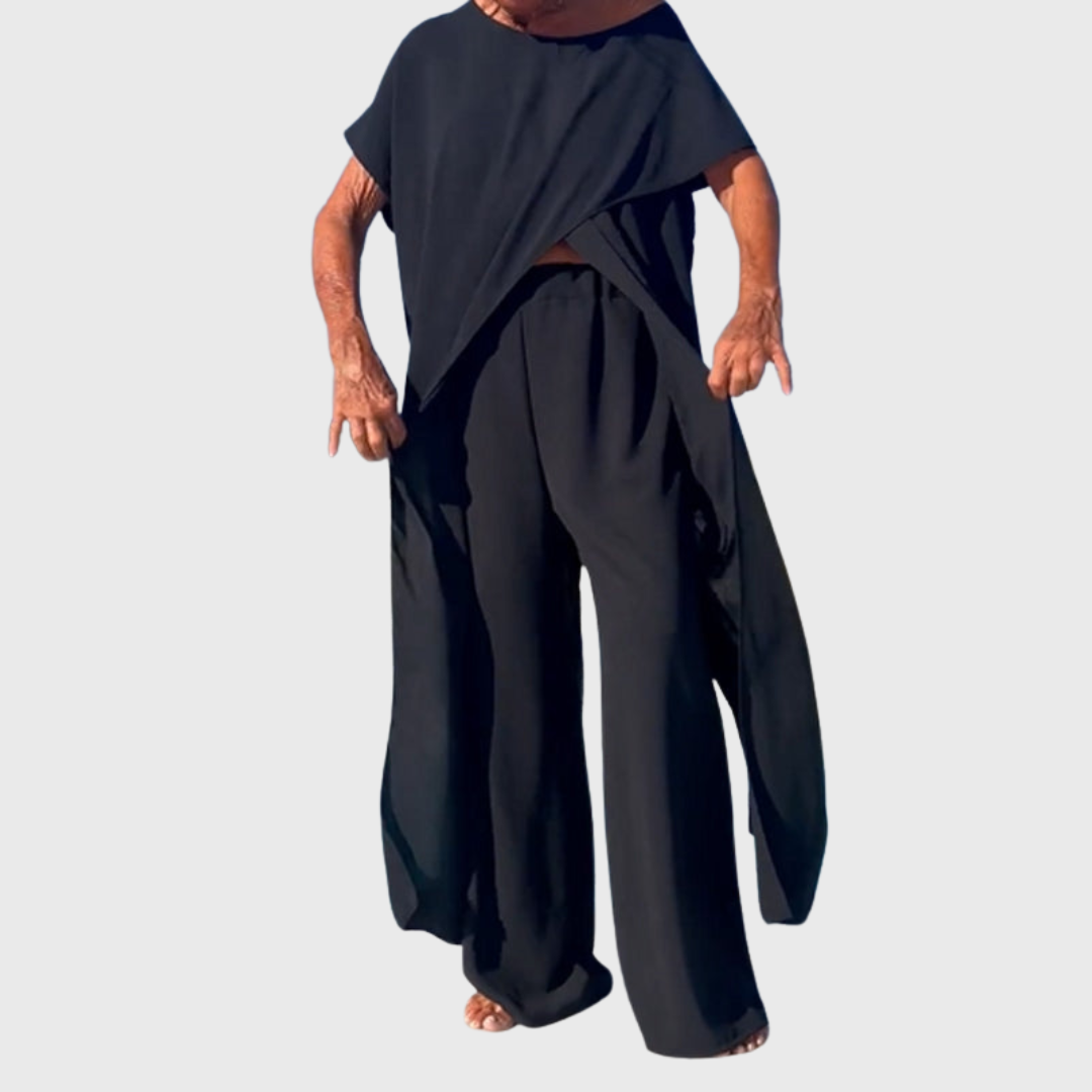 Unser beliebtes Zweiteiler-Set ist die perfekte Mischung aus Komfort und Eleganz. Mit seinem lockeren Schnitt und dem schmeichelnden Design bringt es Leichtigkeit in deinen Alltag – egal ob im Büro, beim Stadtbummel oder zum Ausgehen. Viele Kundinnen lieben den Look, weil er unkompliziert und dennoch besonders wirkt.