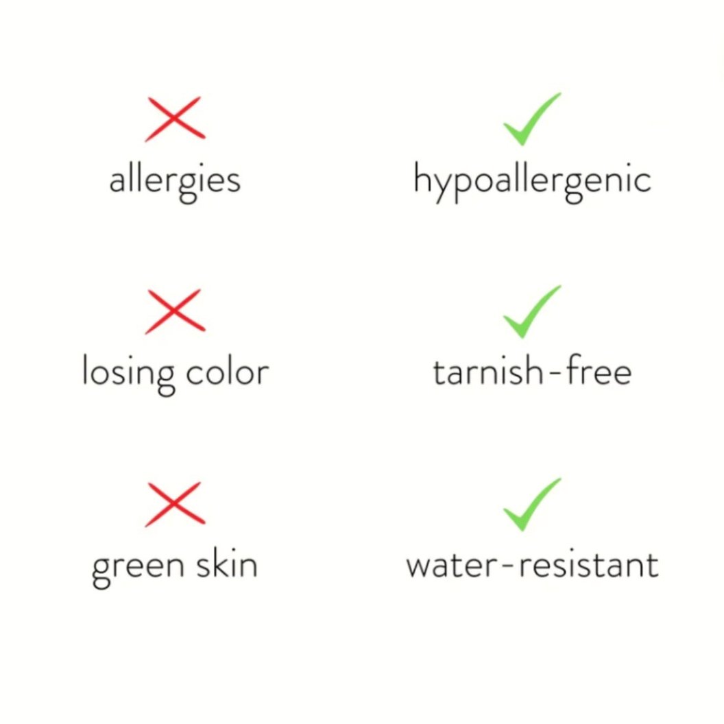 Hergestellt aus wasserdichtem Edelstahl, müssen Sie sich nie wieder um das Verblassen oder Anlaufen von Schmuck sorgen.