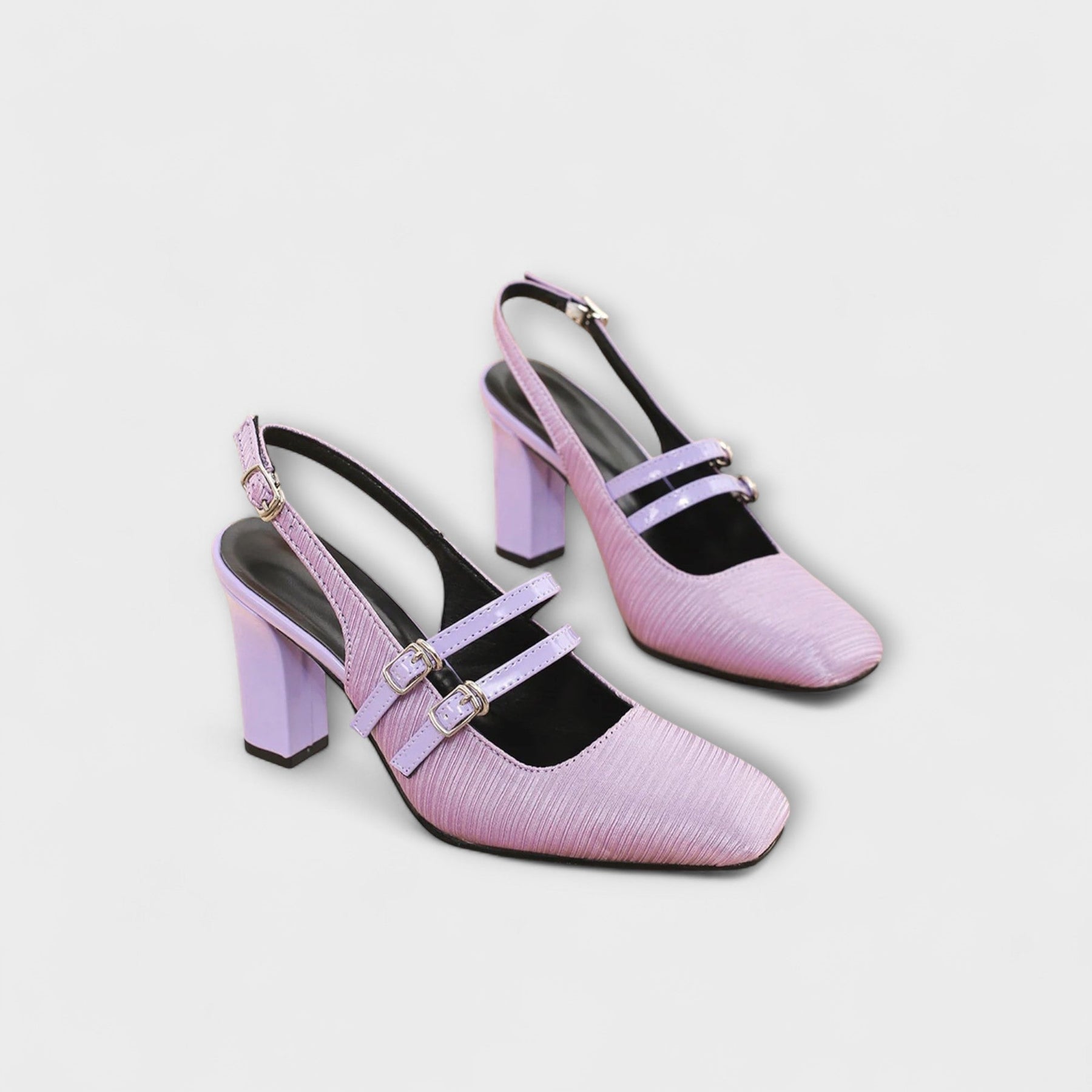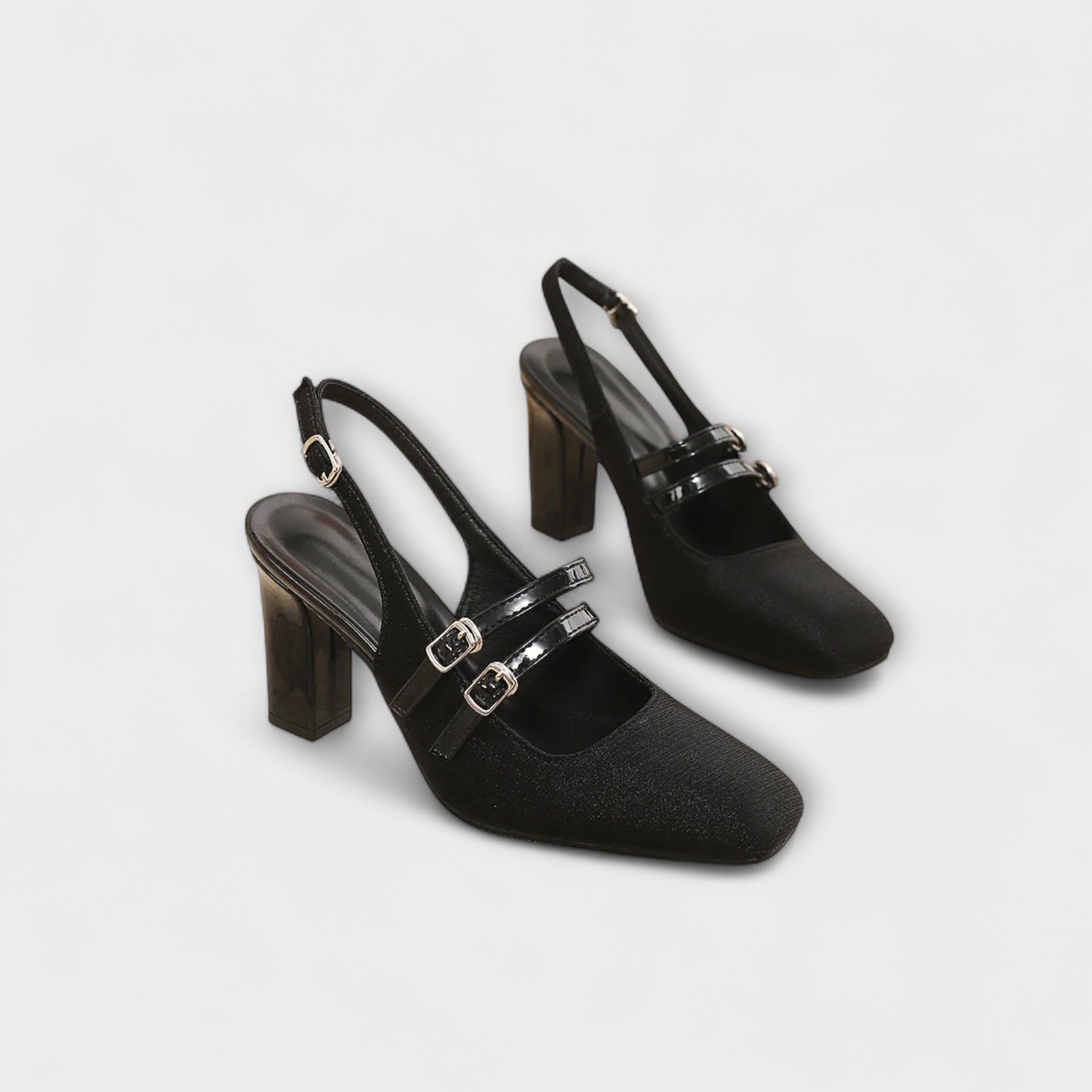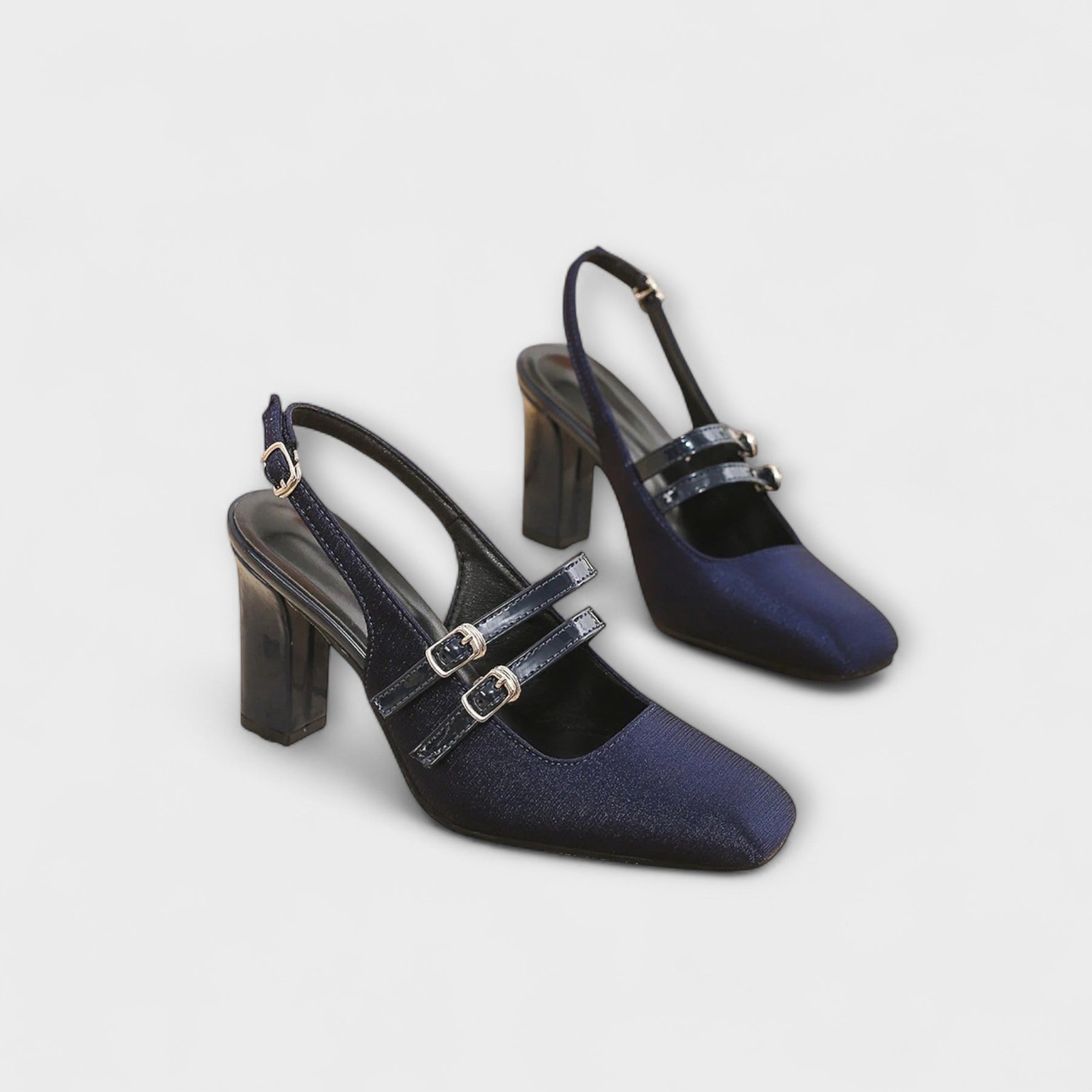 Olivia - Satin-Slingback-Heels in Uni-Farbe mit zwei Riemen