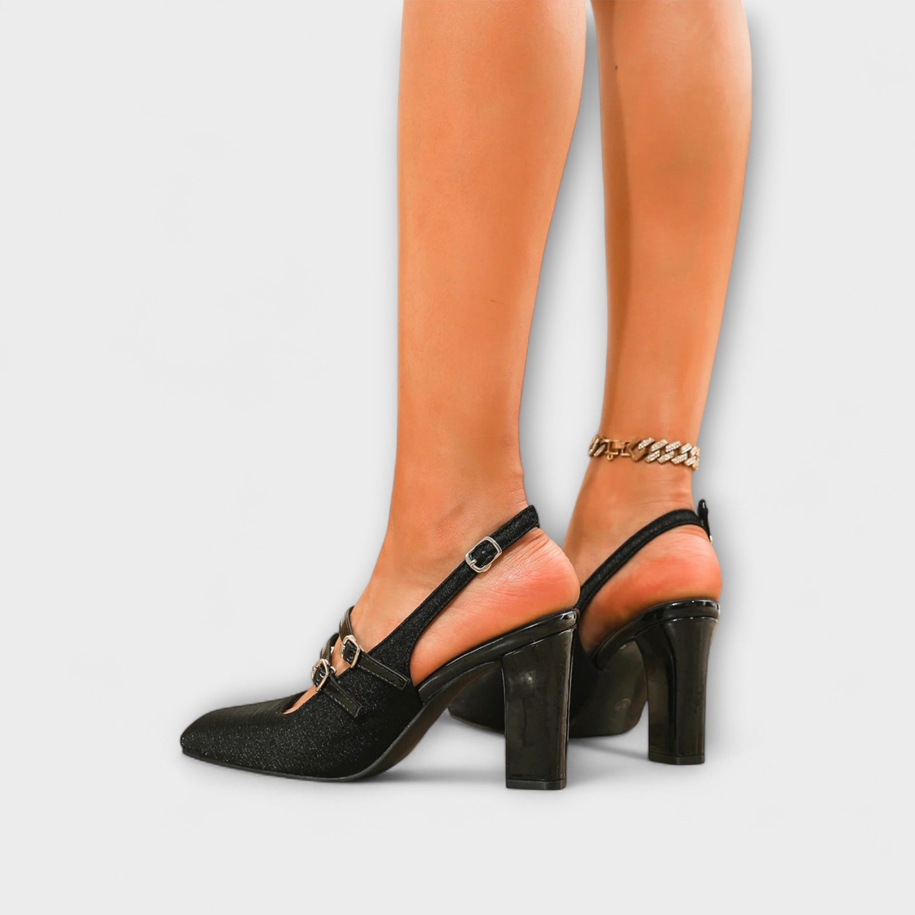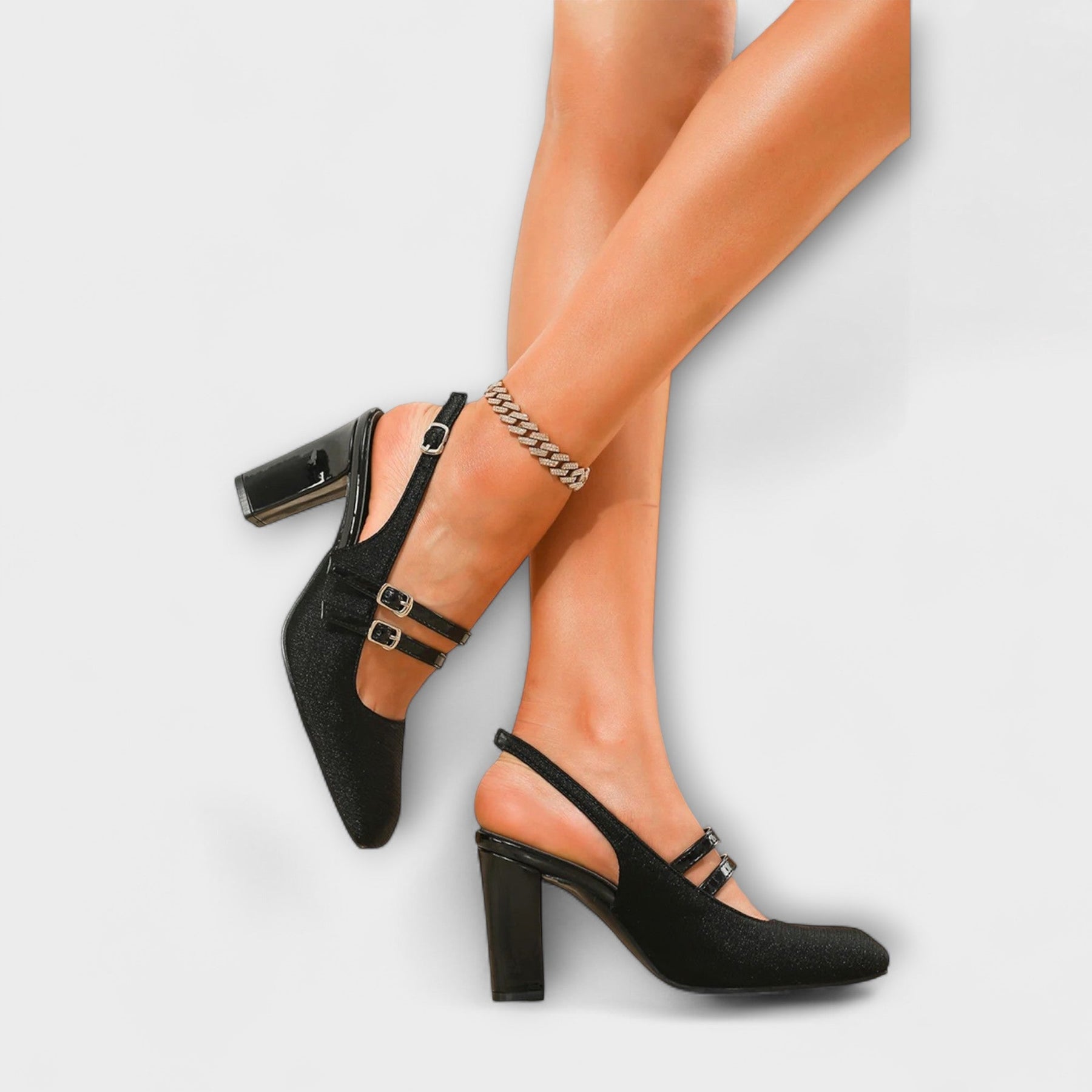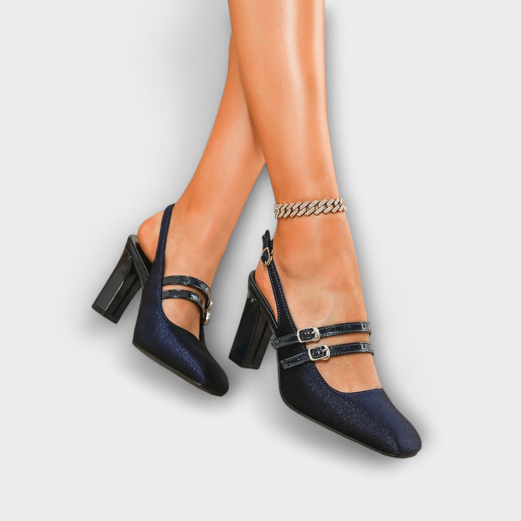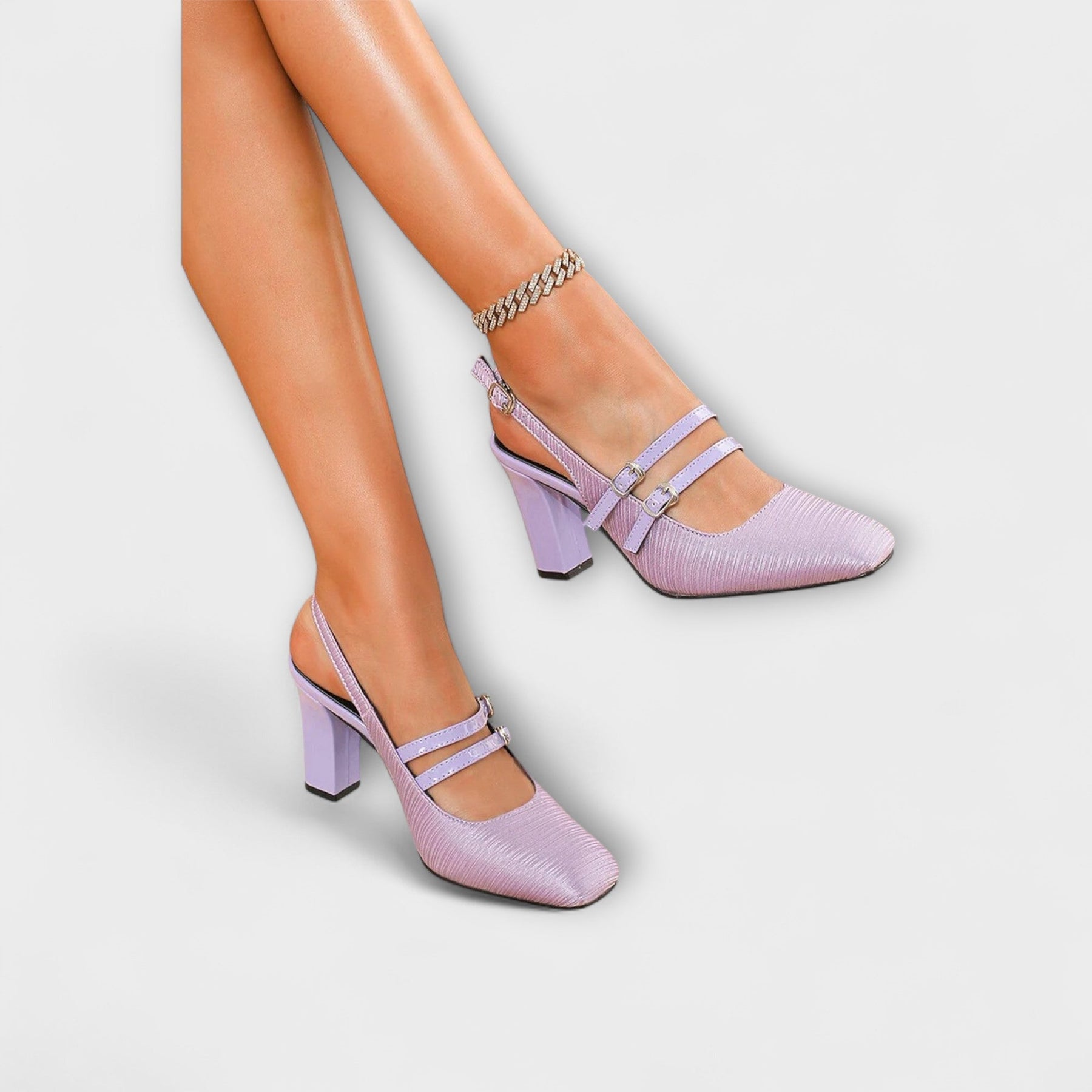 Olivia - Satin-Slingback-Heels in Uni-Farbe mit zwei Riemen