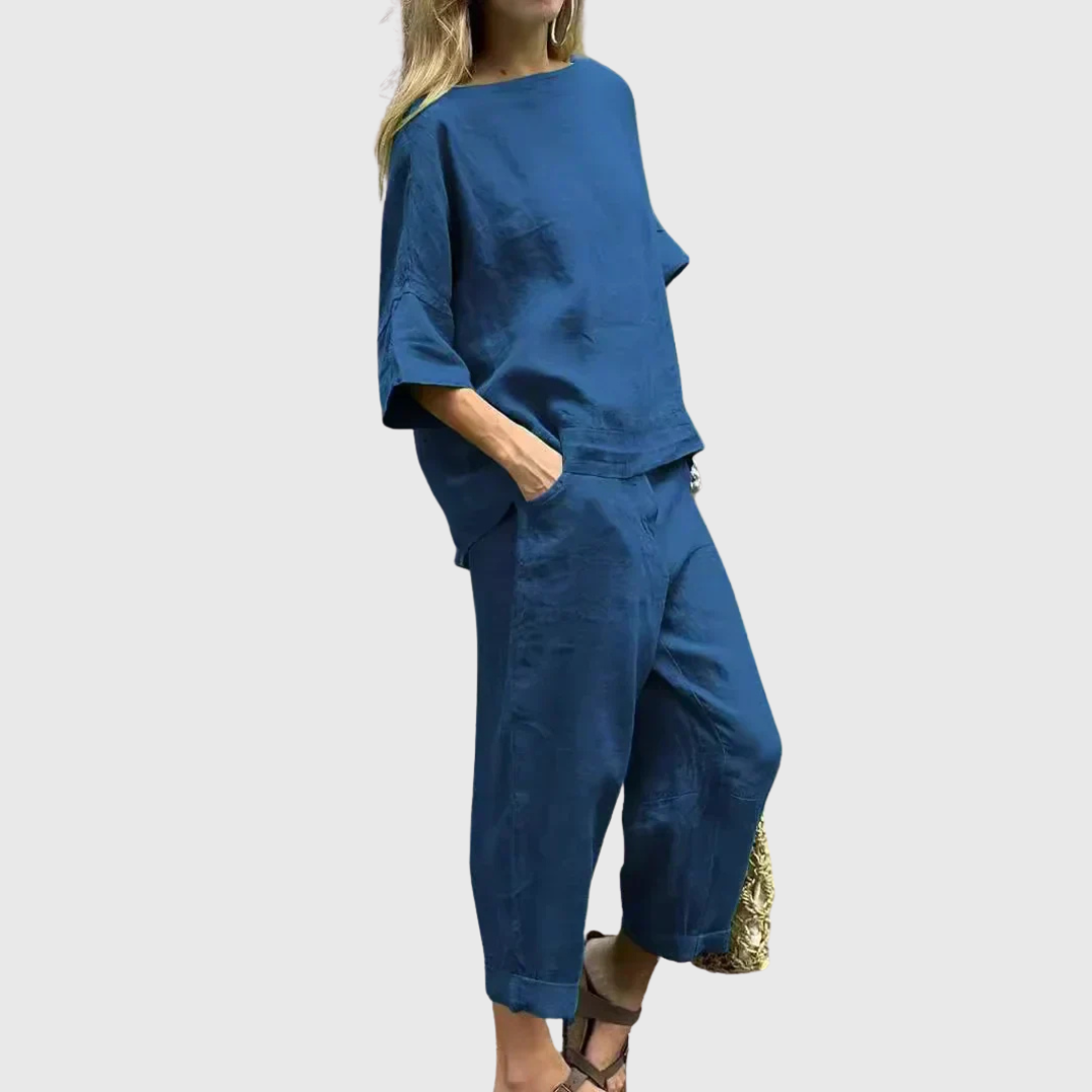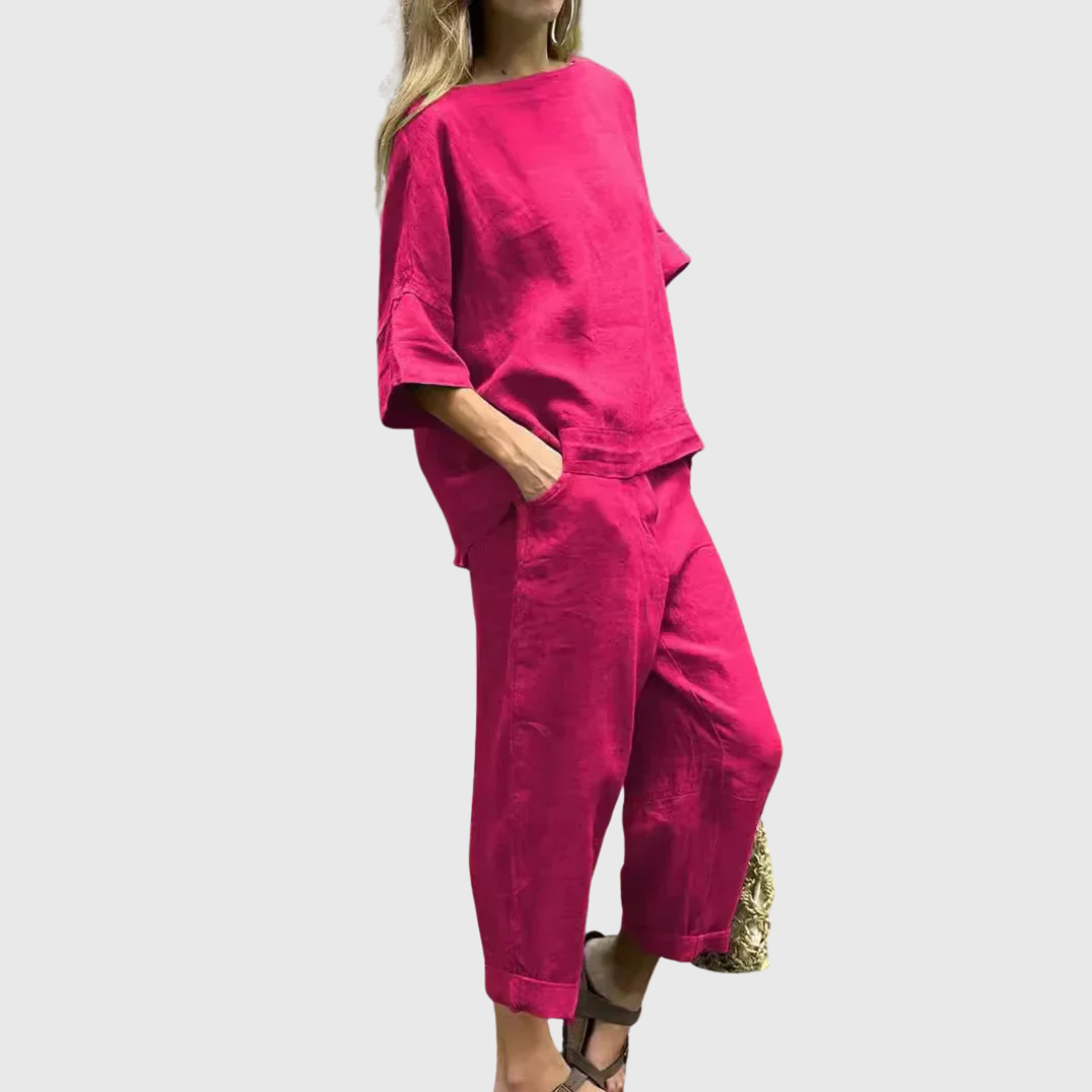 Unser beliebtes Set bringt dir sofortigen Stil und Komfort in einem. Der elegante Zweiteiler lässt sich sowohl entspannt im Alltag als auch zu besonderen Anlässen tragen. Mit seiner schmeichelhaften Passform und den modernen Details sorgt er dafür, dass du dich rundum wohlfühlst und gleichzeitig modisch aussiehst. Perfekt, wenn du ohne Aufwand ein komplettes Outfit haben möchtest.