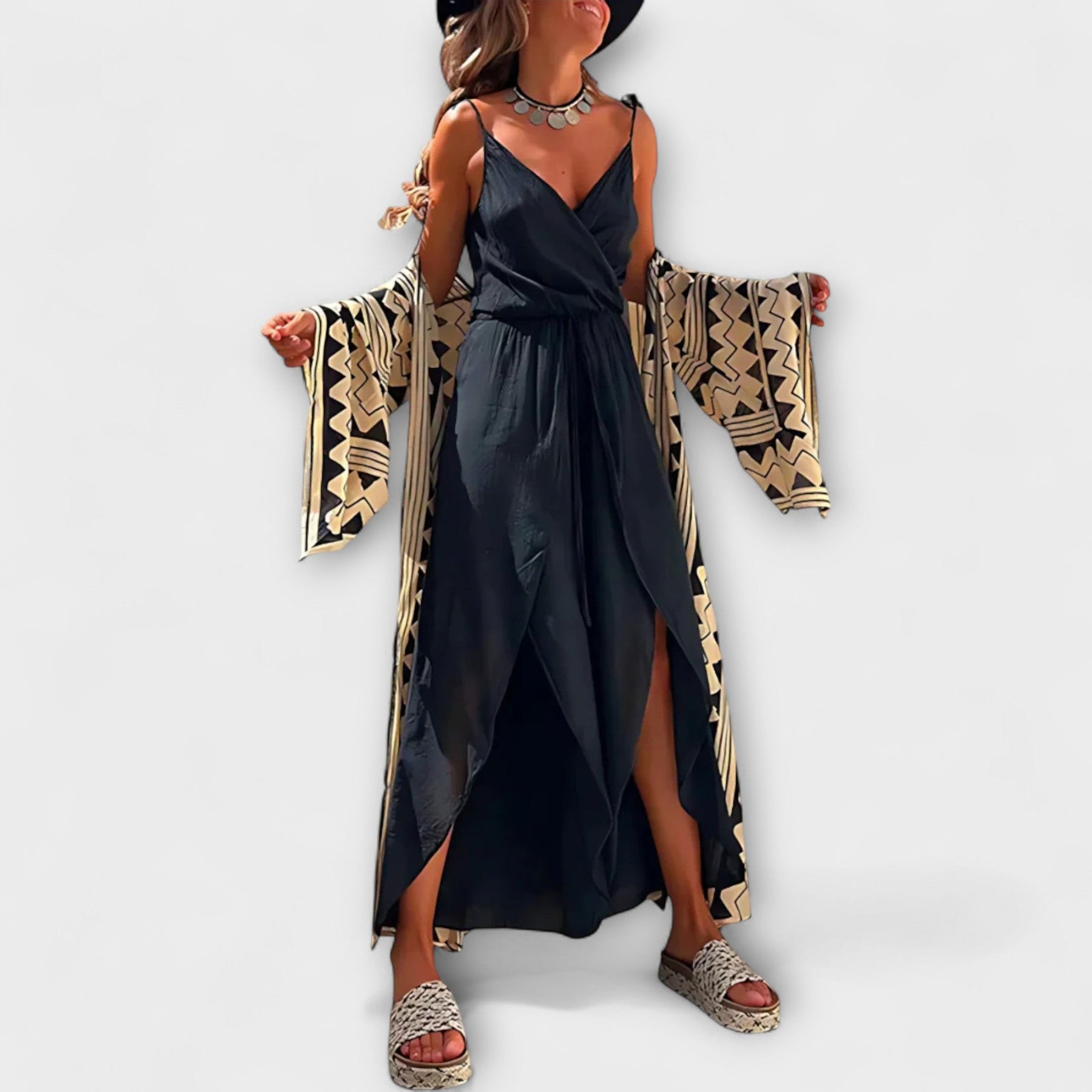 Hergestellt aus weicher, gewaschener Baumwolle, bietet es ein leichtes, atmungsaktives Gefühl, das ideal für warmes Wetter ist. Die Seitenschlitze verleihen nicht nur eine anmutige Bewegung, sondern auch einen Hauch von Sinnlichkeit, was diesen Jumpsuit zu einem Must-have für Sommertage, Küstenausflüge oder entspannte Morgen macht.