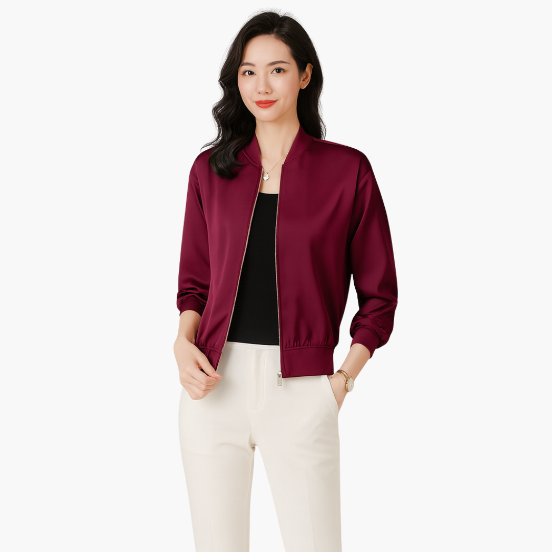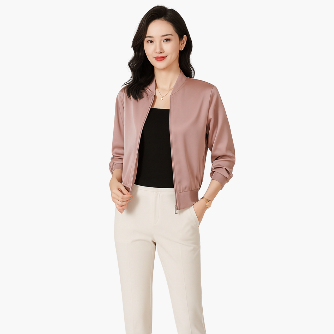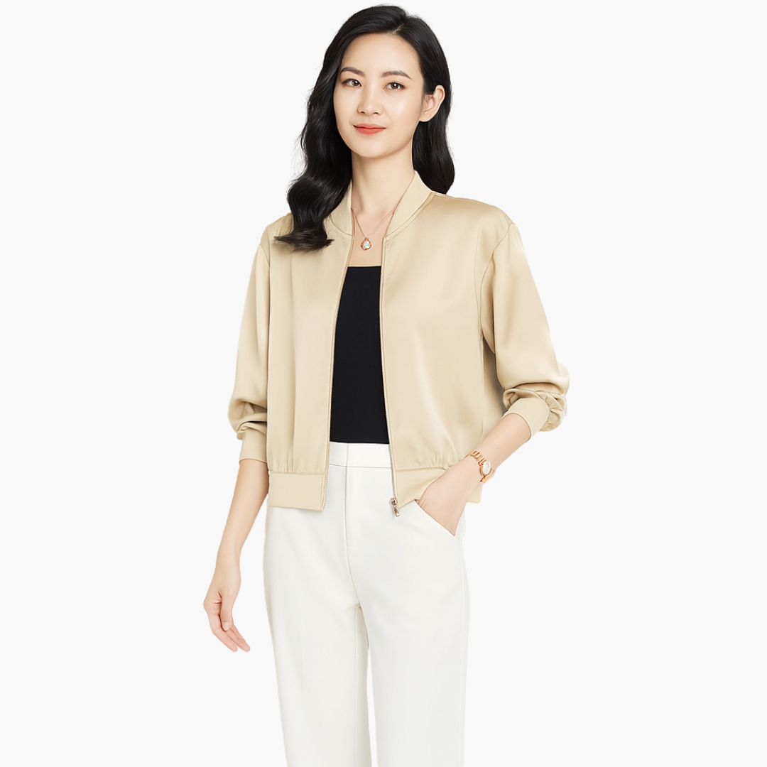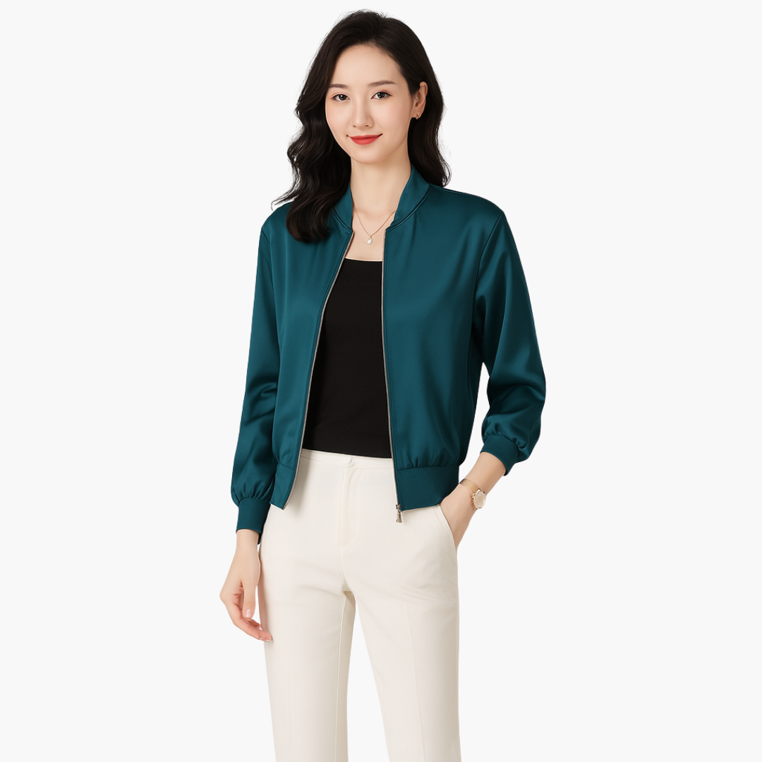 Damen Bomberjacke aus Satin mit Reißverschluss vorne