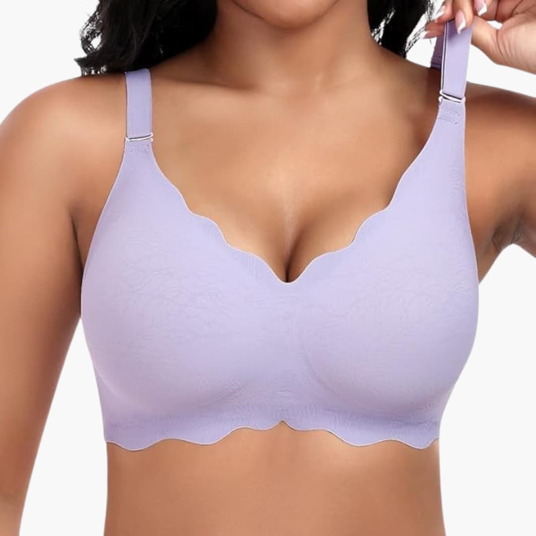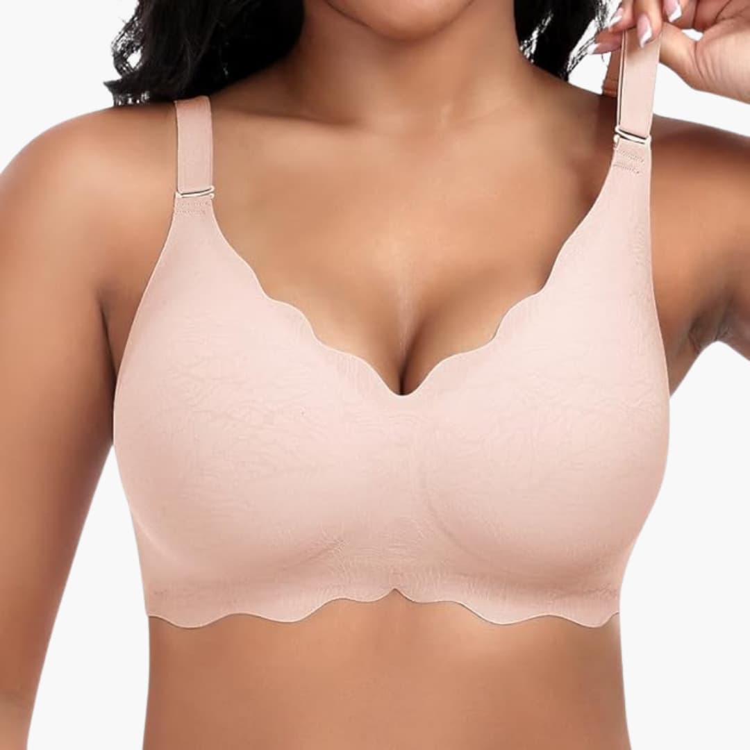 Dieser bügellose Damen-BH aus leichtem, atmungsaktivem Material ist für den ganzjährigen Einsatz geeignet. Mit V-Ausschnitt, nahtloser Verarbeitung, gepolsterten Cups und verstellbaren Trägern bietet er eine körpernahe Passform. Die breite Seitenpartie, Spitzentextur und Hakenverschluss sorgen für zusätzliche Abdeckung und sicheren Halt bei täglicher Verwendung.
