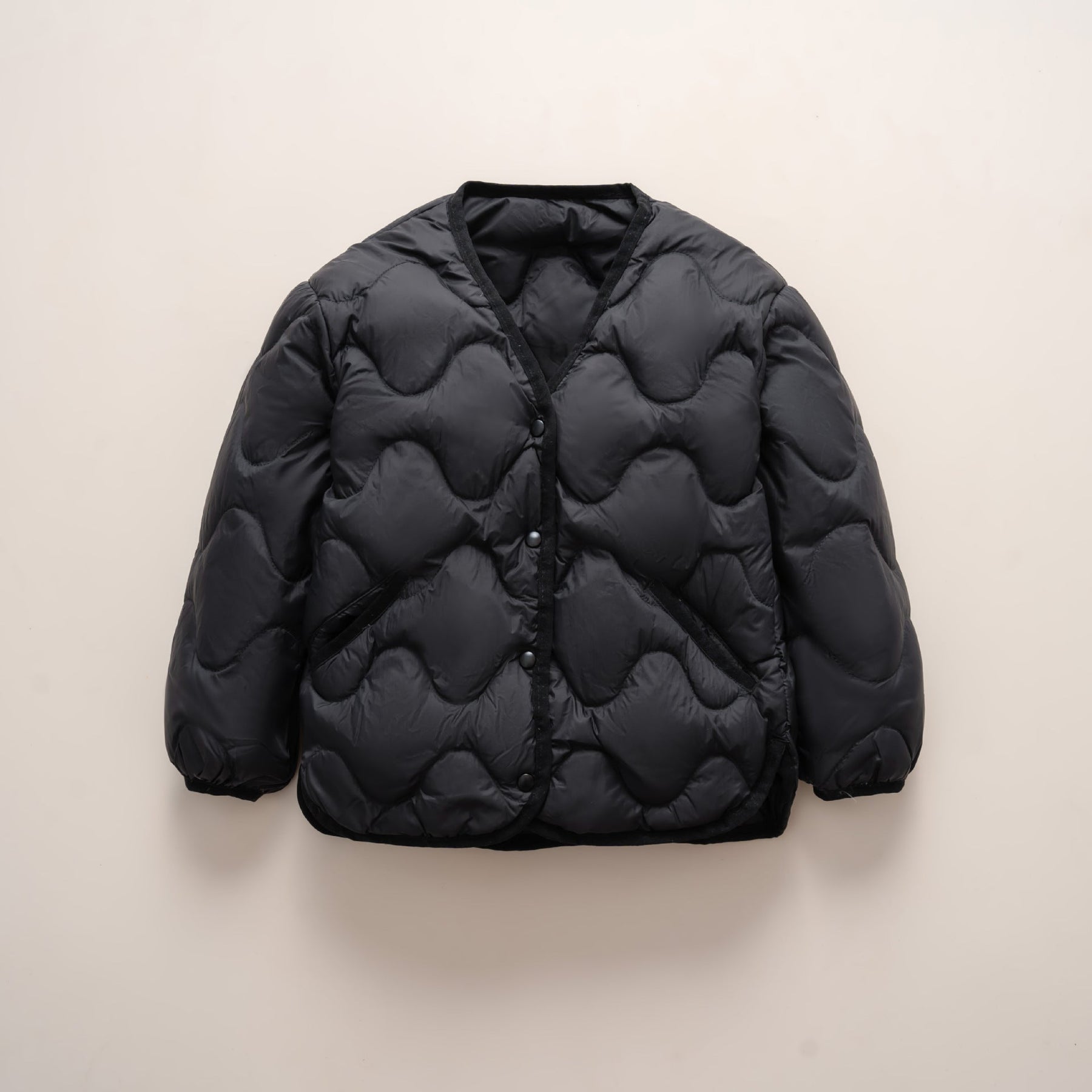 Damen gesteppte Daunenjacke mit modernen Wellenmustern und praktischen Taschen Heidi-Mode