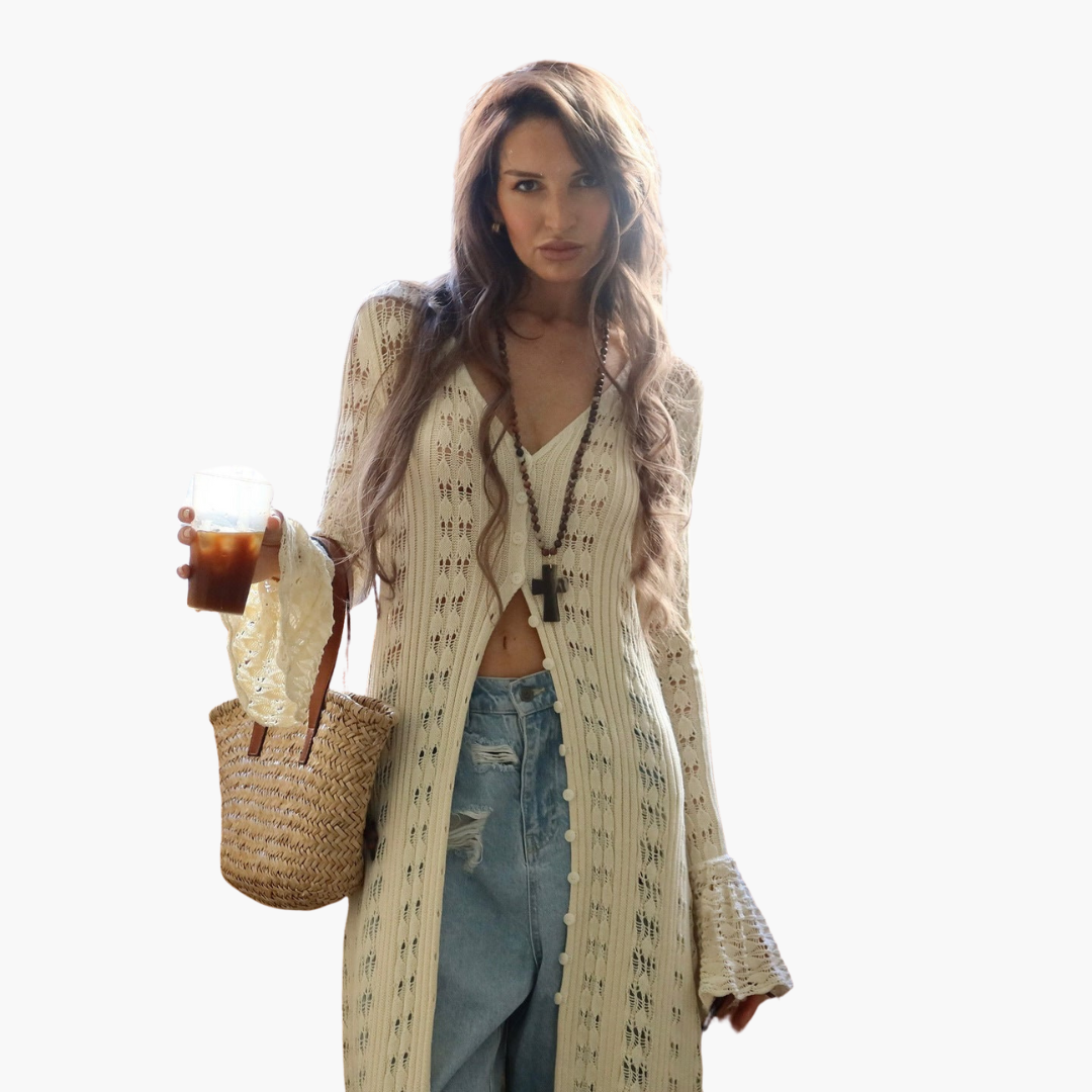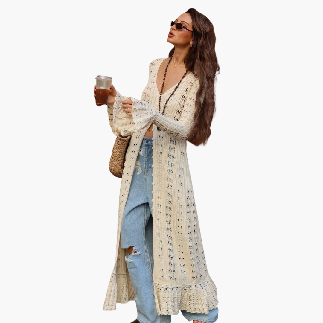 Damen Langer cardigan mit offener Front und ausgestellten Ärmeln