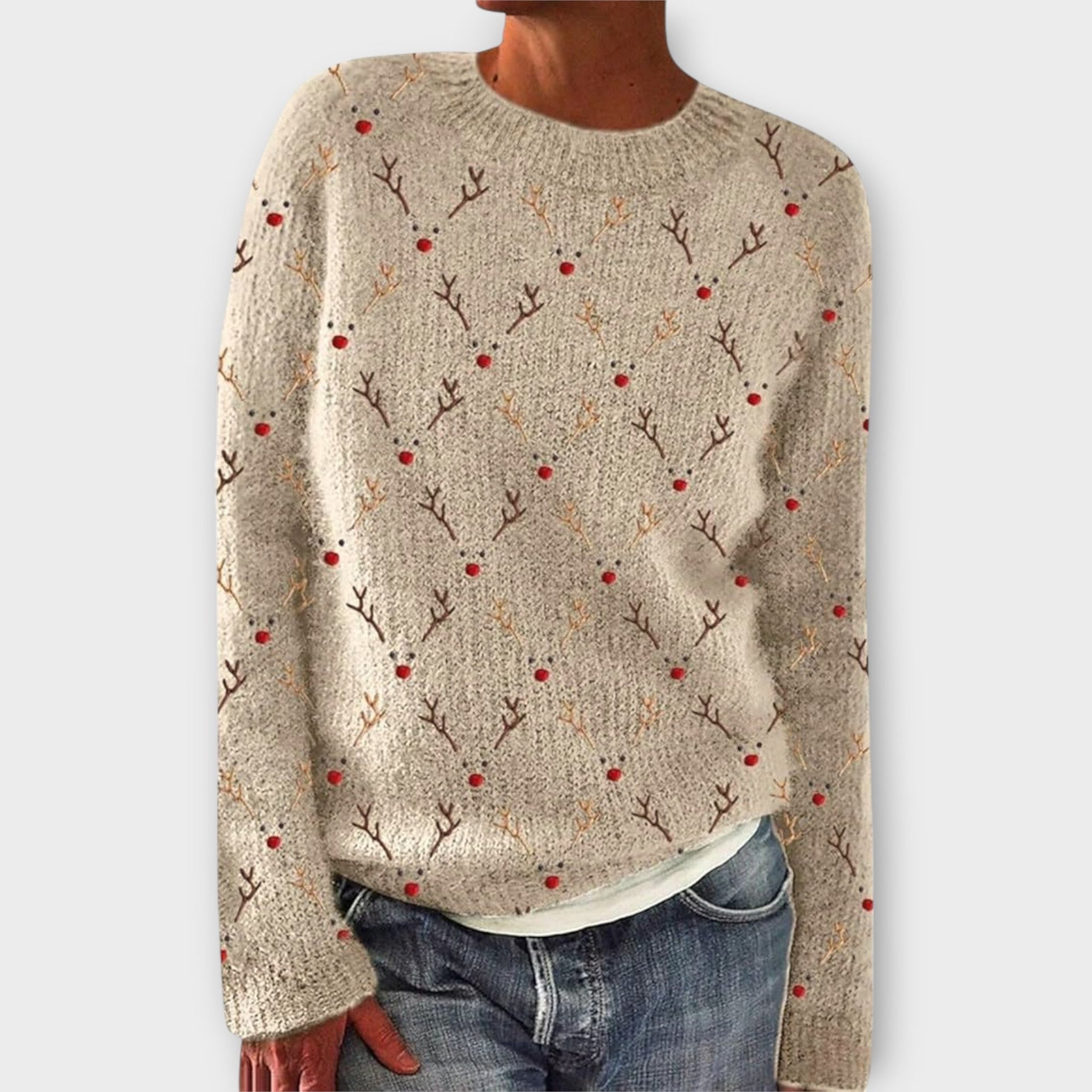 Dieser Damen Strickpullover vereint ein verspieltes Wintermuster mit einer modernen, bequemen Passform. Das dezente Design mit feinen Rentiergeweih-Details sorgt für saisonalen Charme, während der klassische Rundhalsausschnitt einen zeitlosen Look bietet. Ideal für entspannte Tage oder gemütliche Abende.