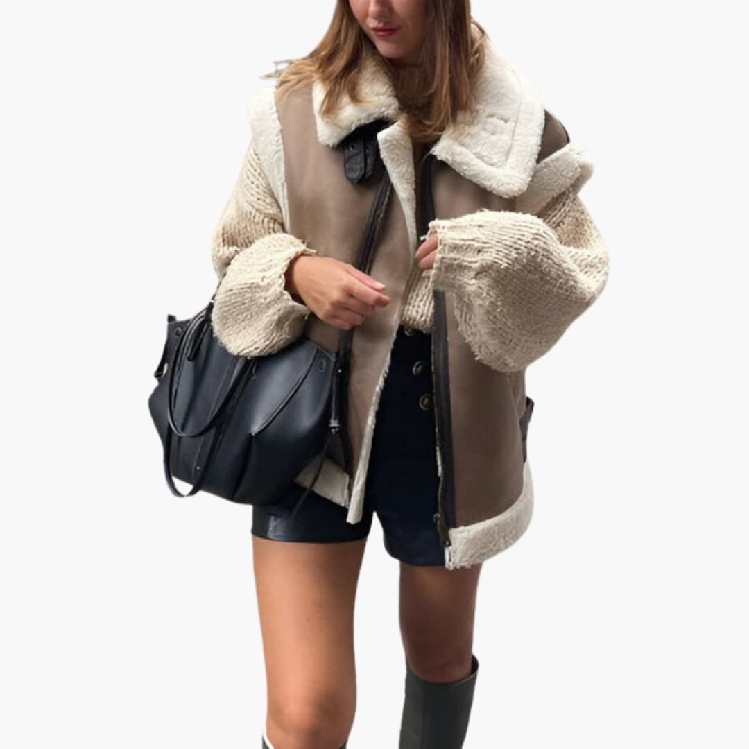 • Kragen: Weiter Umlegekragen mit sichtbarem Teddyfellfutter am Rand.