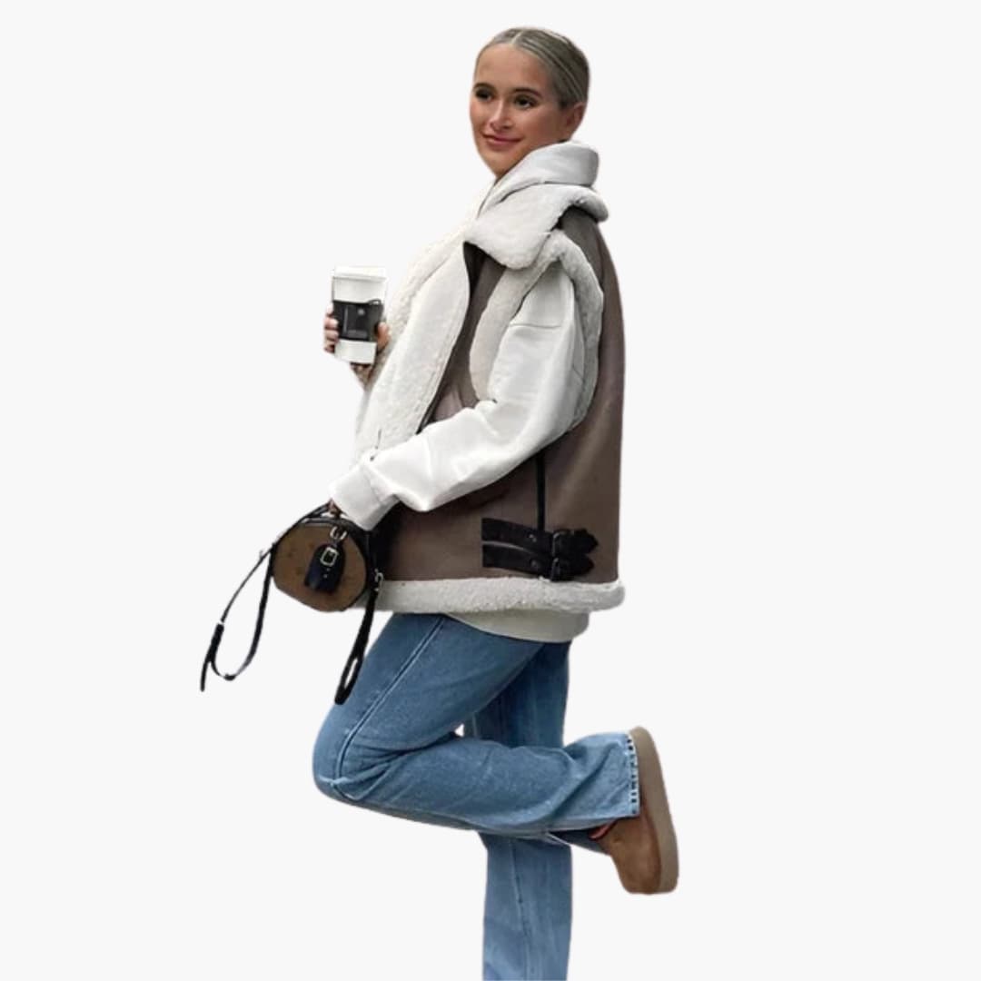 Damen Weste mit Reißverschluss und Kunstfellfutter
