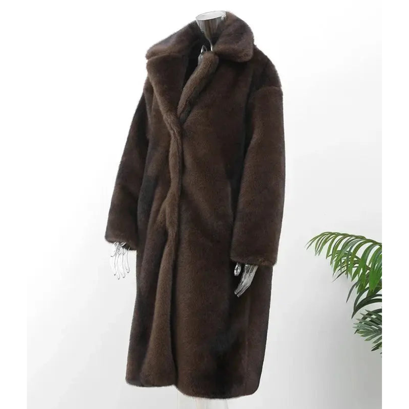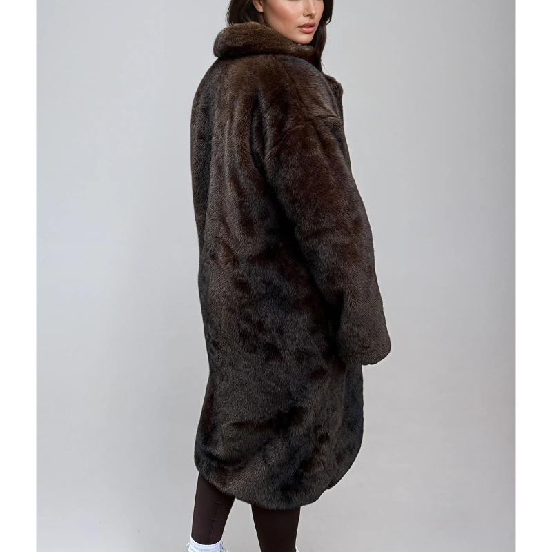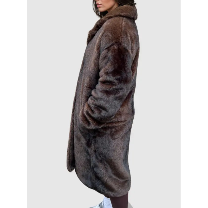Dieser lange Damenmantel aus weichem Kunstfell bietet ultimativen Tragekomfort und zeitlose Eleganz. Sein klassischer Schnitt und das luxuriöse Material machen ihn zum idealen Begleiter für kalte Tage – ob beim Stadtbummel, im Büro oder zu besonderen Anlässen.