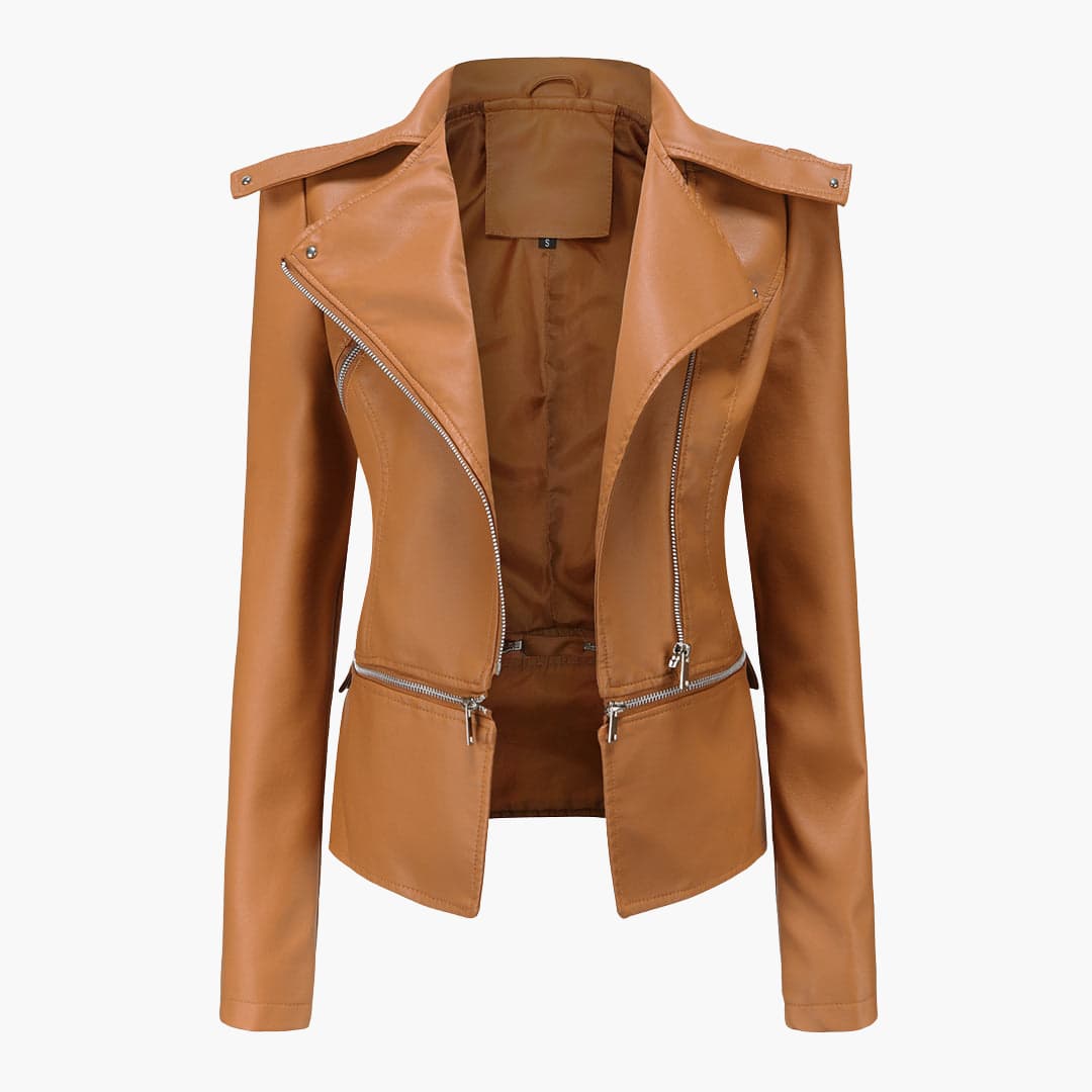 Damenjacke im Biker-Stil mit Reverskragen und Reißverschlusstaschen.