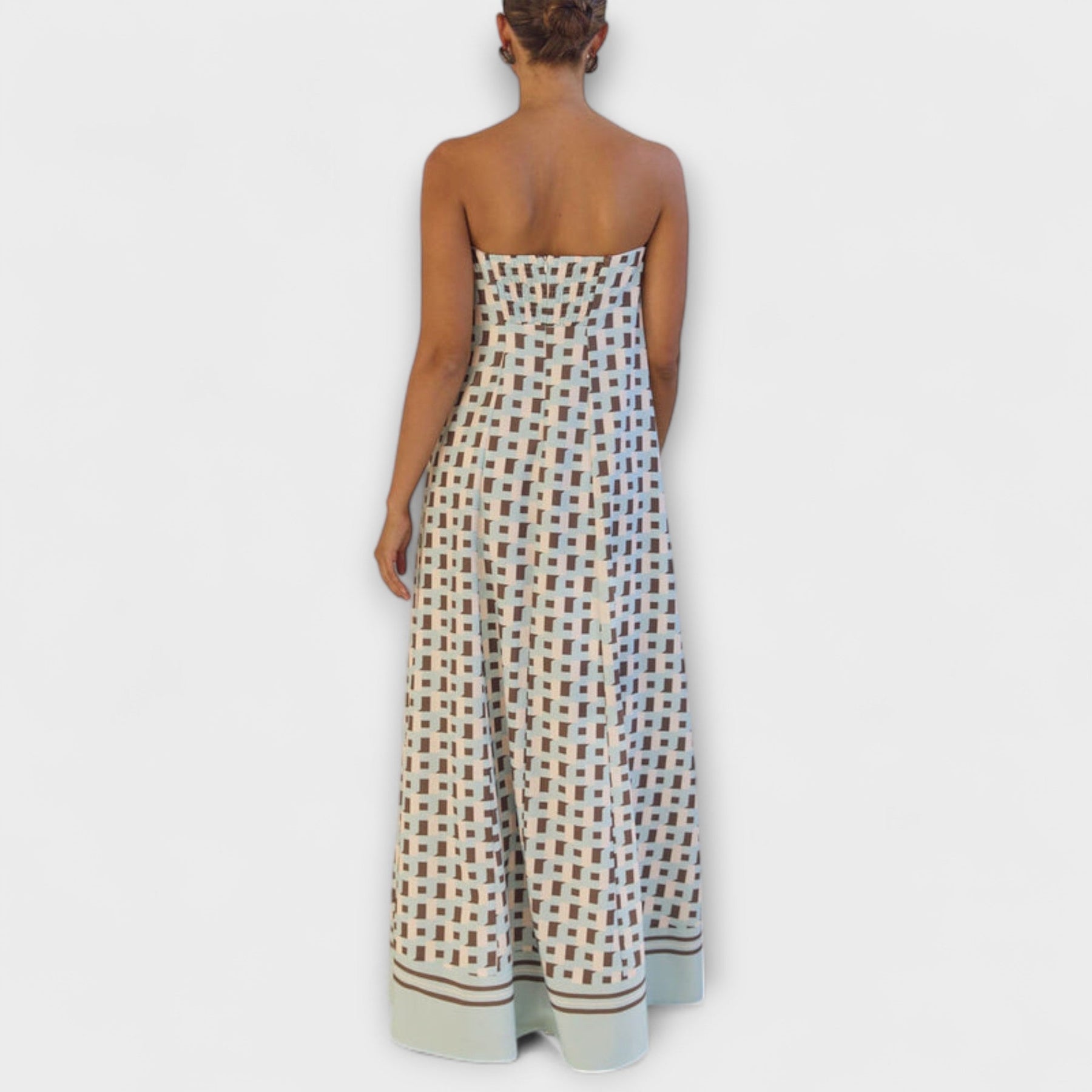 Hasel - Einzigartiges geometrisches Off-Shoulder Maxi-Kleid