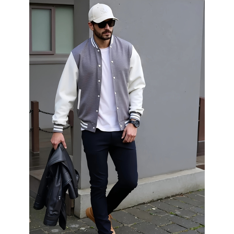 - Stylischer Look - Baseball-Design mit Knopfverschluss