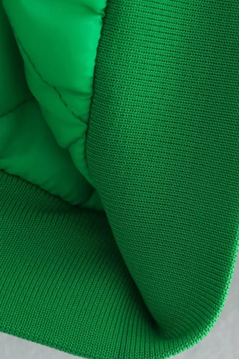 Modernes Design: Der grüne Farbton und die charakteristischen Bomberjacken-Details setzen einen coolen Akzent.