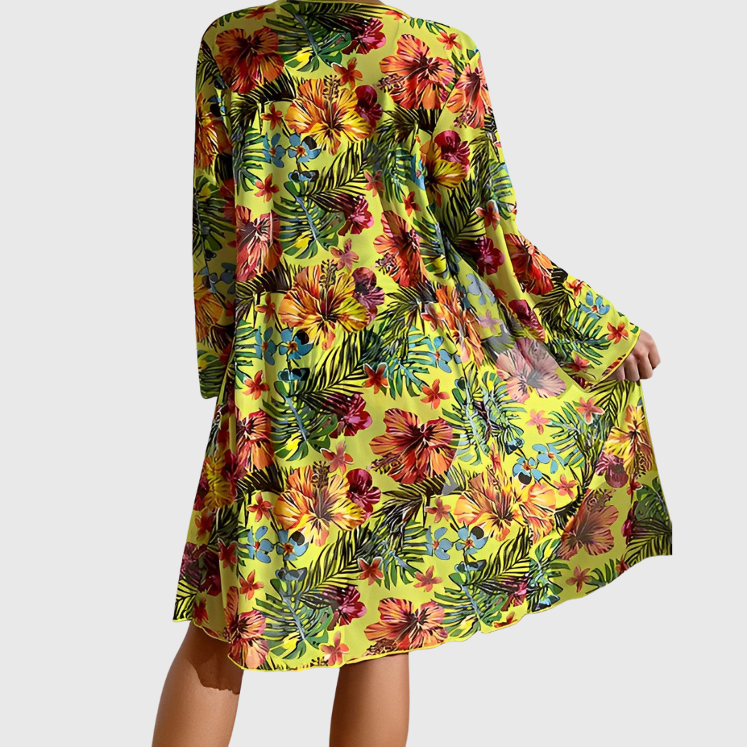 Unser beliebter Valery ist ein echter Sommer-Bestseller – ein stylisches Bikini-Set mit tropischem Muster und passendem Überwurf. Der hohe Tragekomfort kombiniert mit dem leichten Stoff macht ihn perfekt für sonnige Tage am Strand oder am Pool. Du bekommst Style, Bequemlichkeit und das gewisse Extra, das dich sofort auffallen lässt.